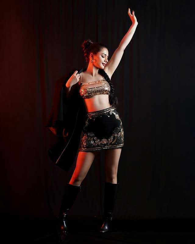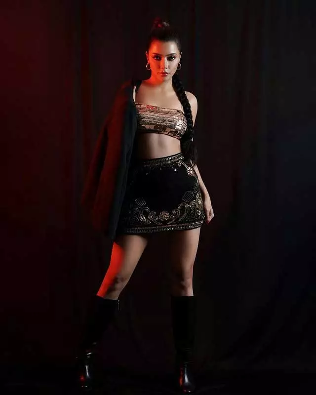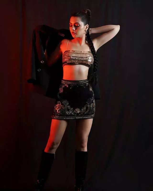 By: Tupaki Desk | 31 May 2025 10:47 AM ISTRuhi Singh recently lit up Instagram with a striking new post that�s full of energy and sparkle. Sharing a confident photo from a recent shoot, she wrote, "Let�s go dancing." In the photo, Ruhi is dressed in a shimmering top paired with a stylish black skirt decorated with elegant gold patterns. Her long braid and black boots add a strong edge to her look. She is seen draping a black jacket over one shoulder, she strikes a powerful pose against a dark background with red lighting, giving the frame a dramatic vibe. The caption, paired with the lively music track �I Like It� by Cardi B, Bad Bunny, and J Balvin, matches the mood perfectly.