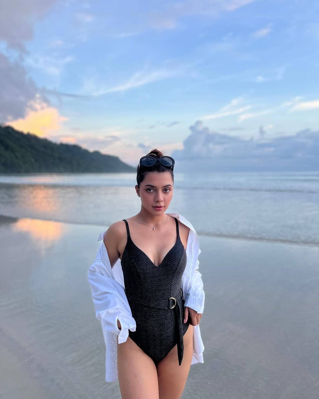 In these visuals, Ruhi’s styling reflects a perfect balance between sophistication and contemporary appeal. The delicate detailing, soft flow of the fabric, and thoughtfully chosen accessories enhance her natural charisma, resulting in a look that is both polished and organically beautiful. Her expressions remain gentle yet compelling, drawing viewers into the mood of the setting and capturing the essence of serene glamour.