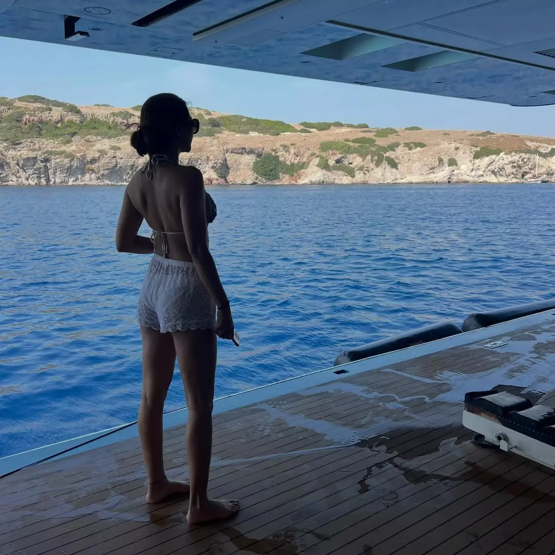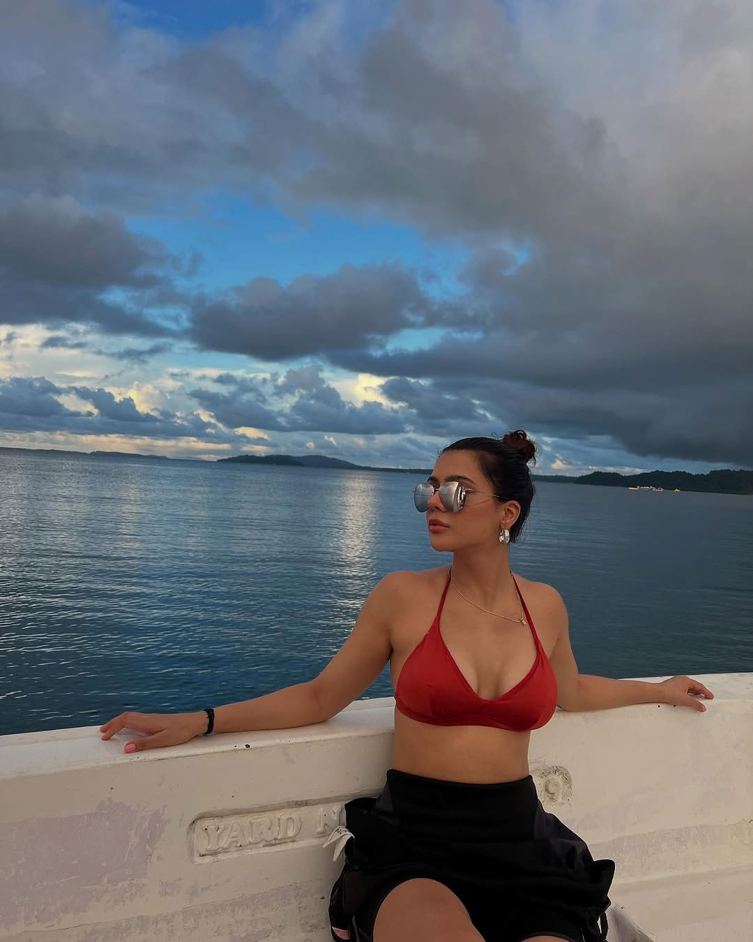 Ruhii Singh, a glamorous Indian actress and former beauty queen, continues to mesmerize fans with her stunning photos, including a recent captivating shot of her in a chic blue-and-white bikini, posing confidently on a luxury yacht's infinity pool against a breathtaking Mediterranean backdrop of blue skies and distant hills—highlighting her poised elegance and adventurous spirit.