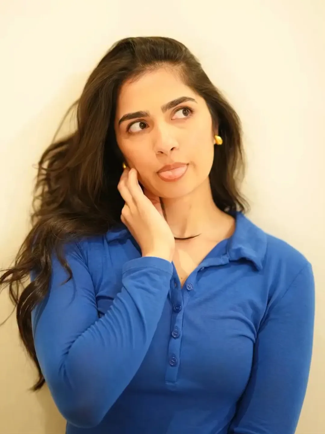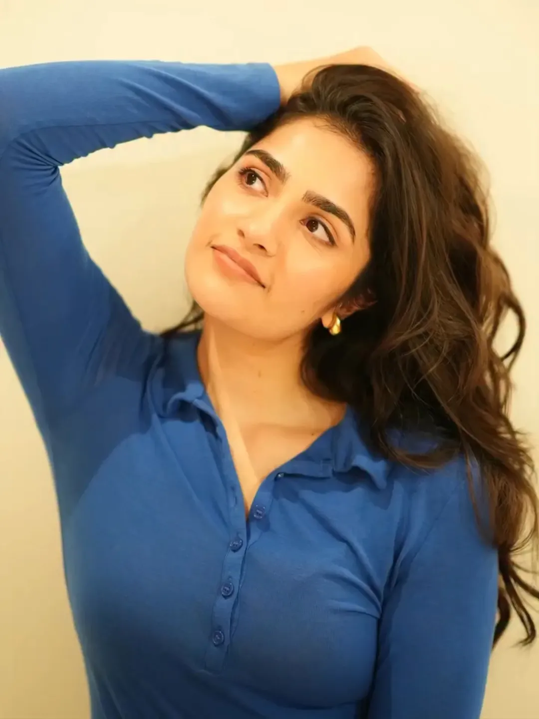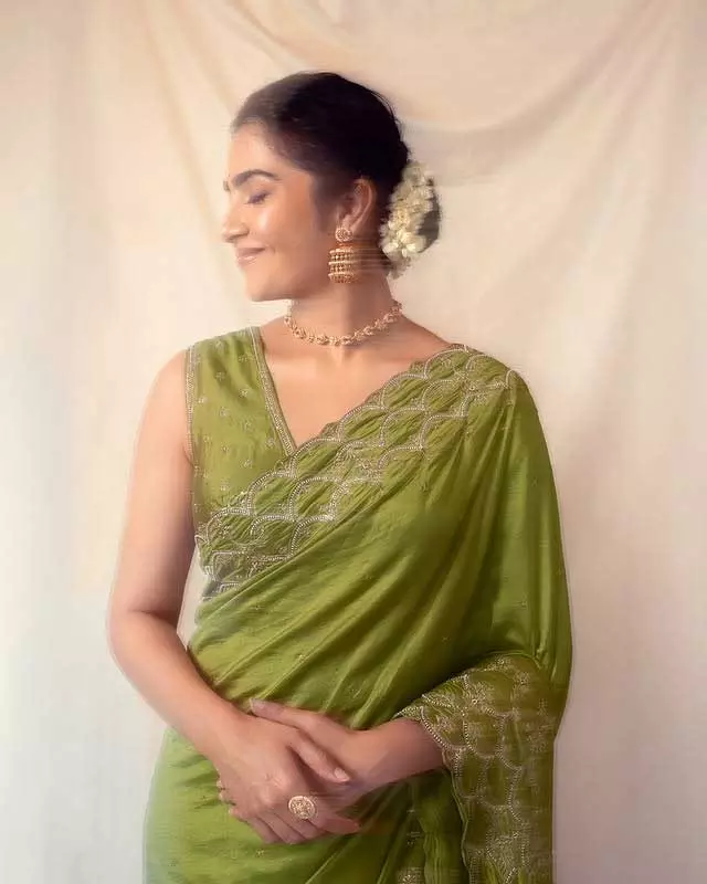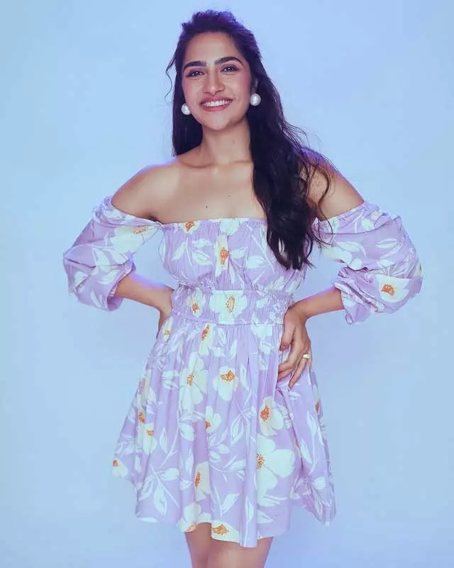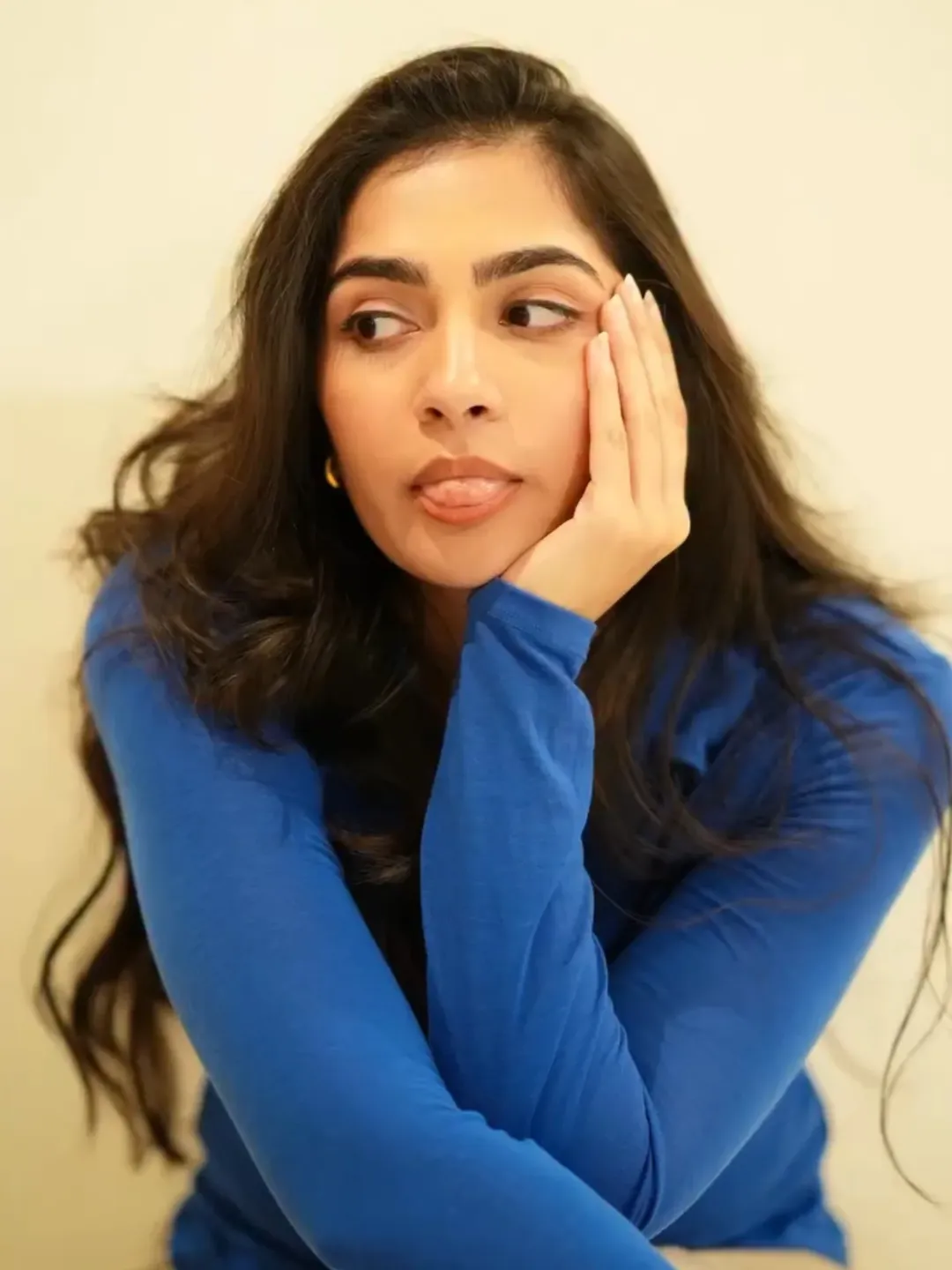 Rukmini Vasanth, the charming Kannada actress, delights fans with her adorable photo collections capturing natural, playful vibes. In this cute snapshot, she beams with a playful pout and furrowed brows under golden sunlight, her long dark hair flowing freely against a warm outdoor backdrop. The casual tank top and effortless glow highlight her youthful, relatable charm, radiating innocence and fun—perfect for her "cute" aesthetic that wins hearts on social media.