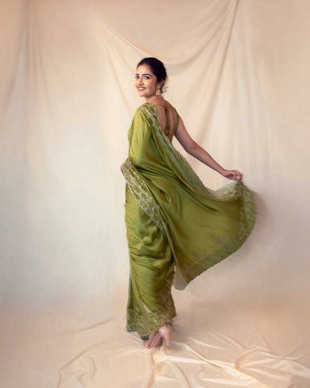 Rukmini Vasanth shared a joyful moment on Instagram in a flowy dress. She twirled around with charm and her caption read, “When in doubt, just twirl it out✨.” The bright colors of her dress gave a lively feel and she appeared relaxed and full of life.