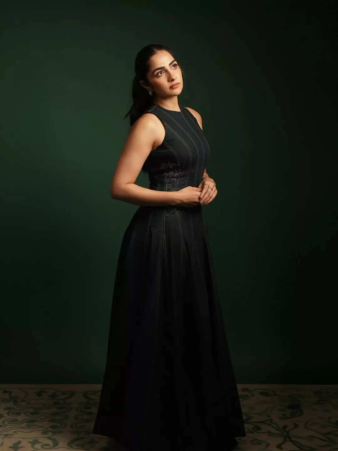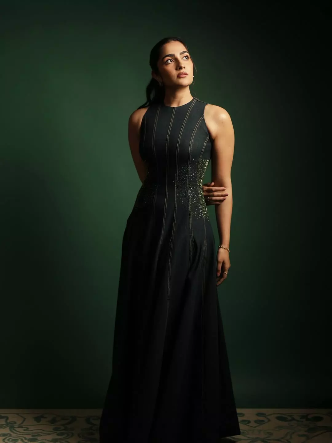 Rukmini Vasanth Dazzles In Green Glam Gown