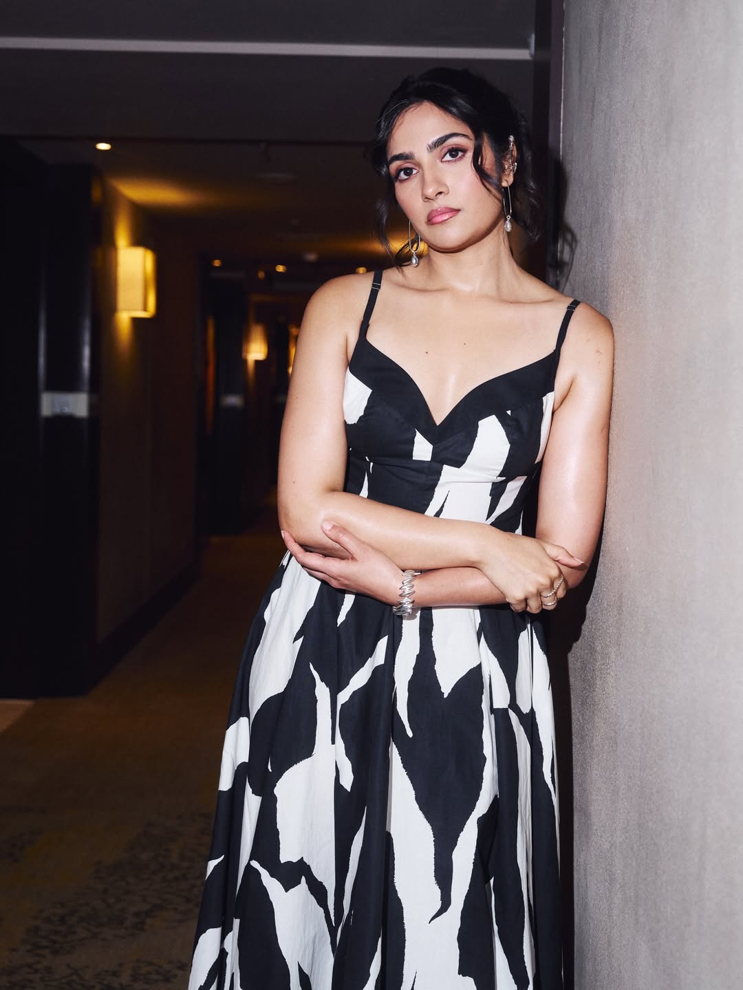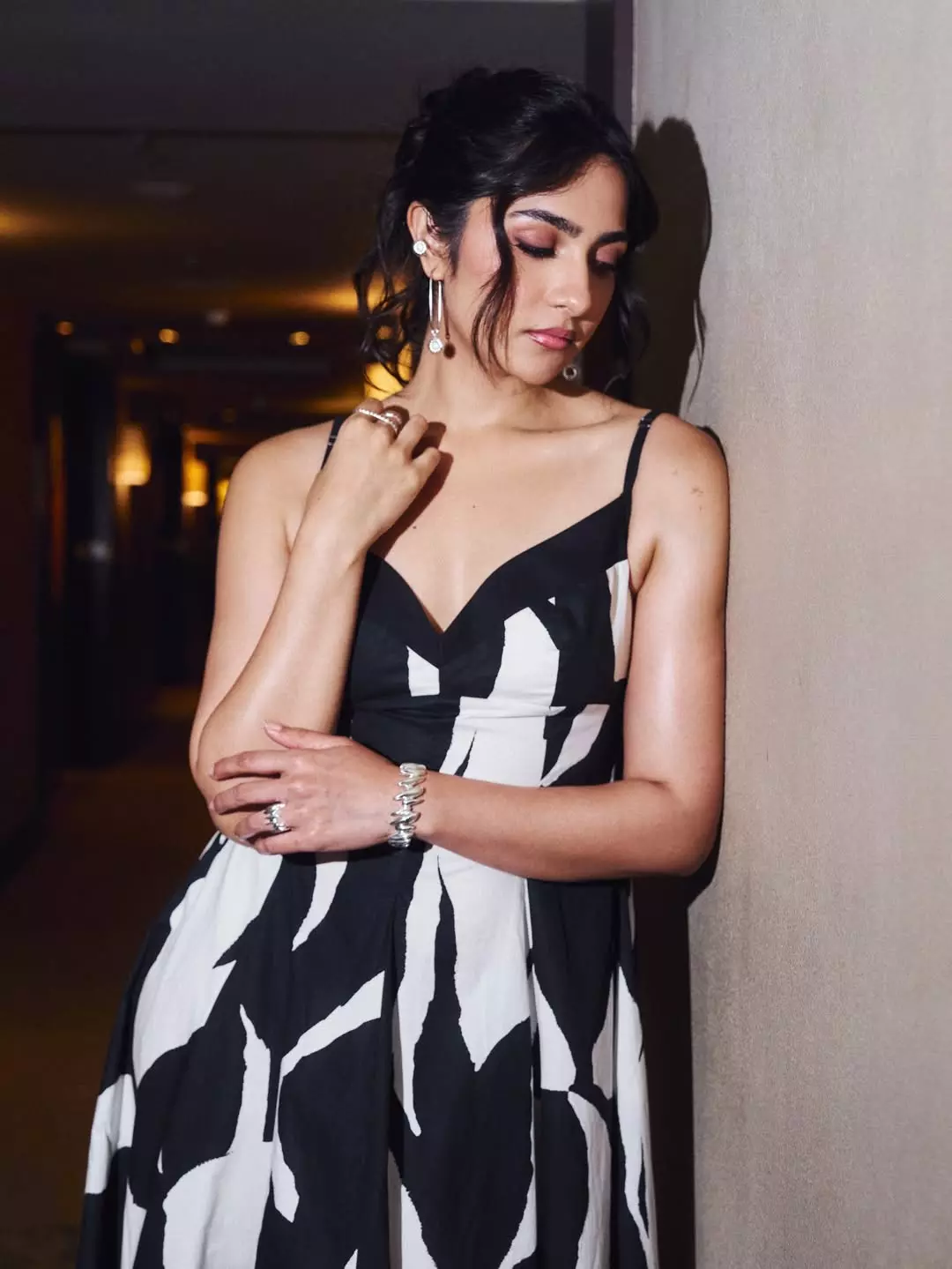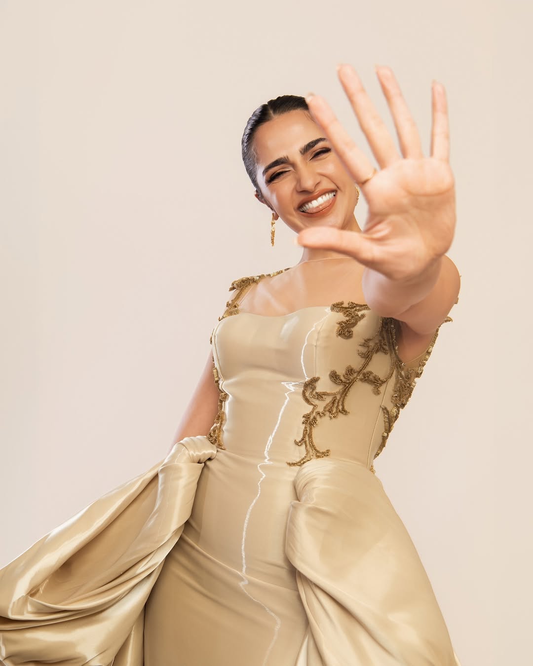 By: Tupaki Desk | 20 April 2026 4:31 PM ISTThis captivating studio portrait of Rukmini Vasanth showcases her intense gaze and effortless elegance in a shimmering gold off-shoulder outfit. With long flowing dark hair, a delicate nose ring, and multiple gold rings, she exudes quiet strength and ethereal beauty against the textured grey backdrop.