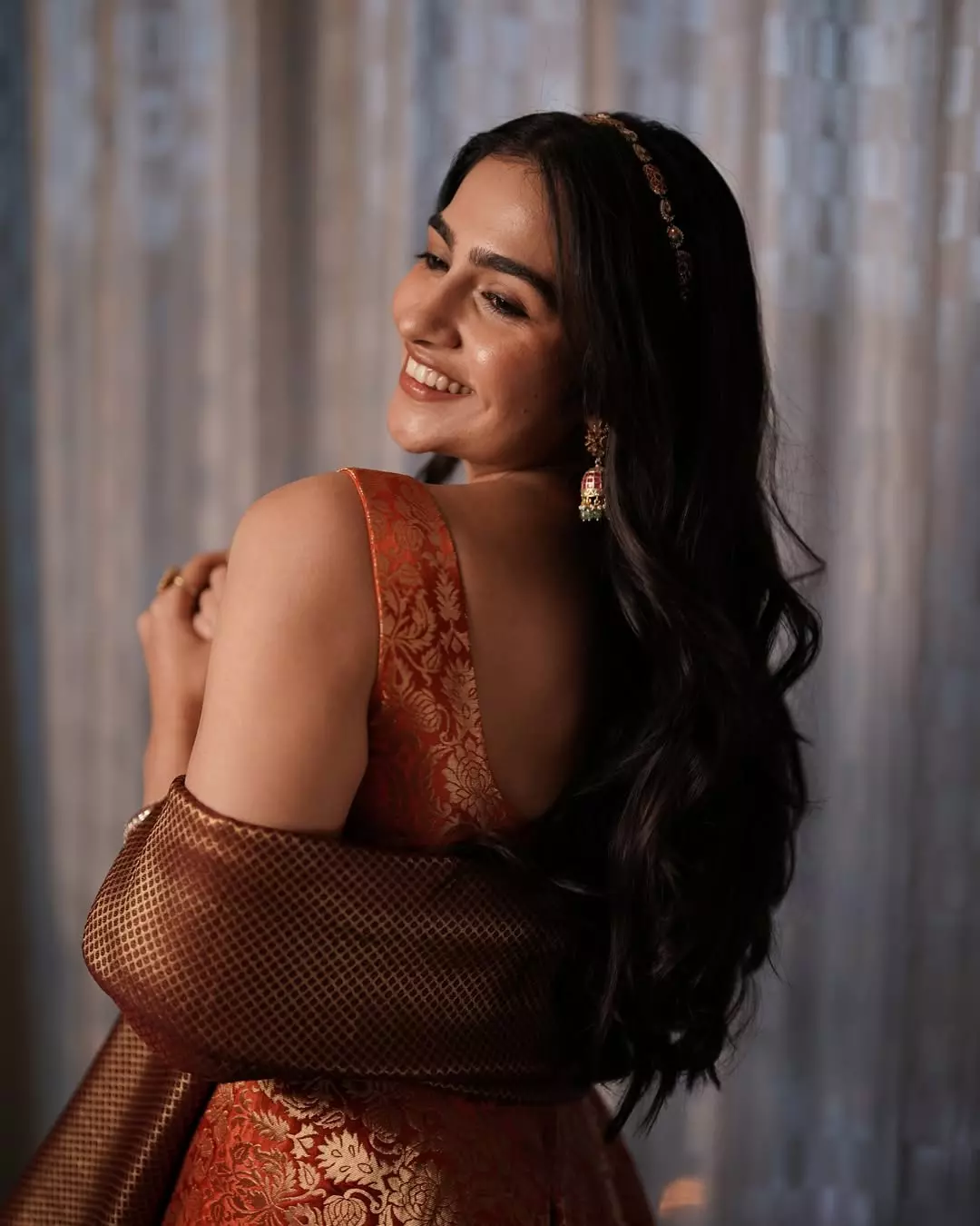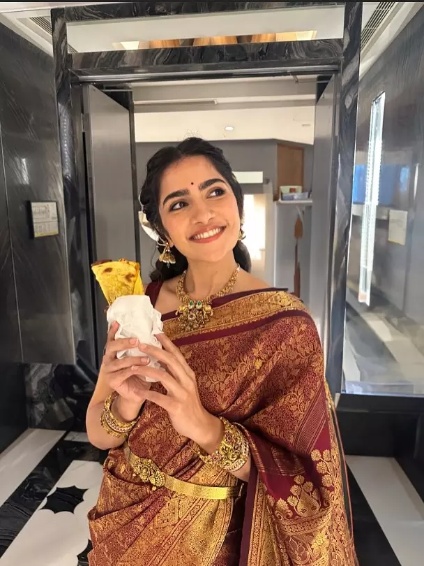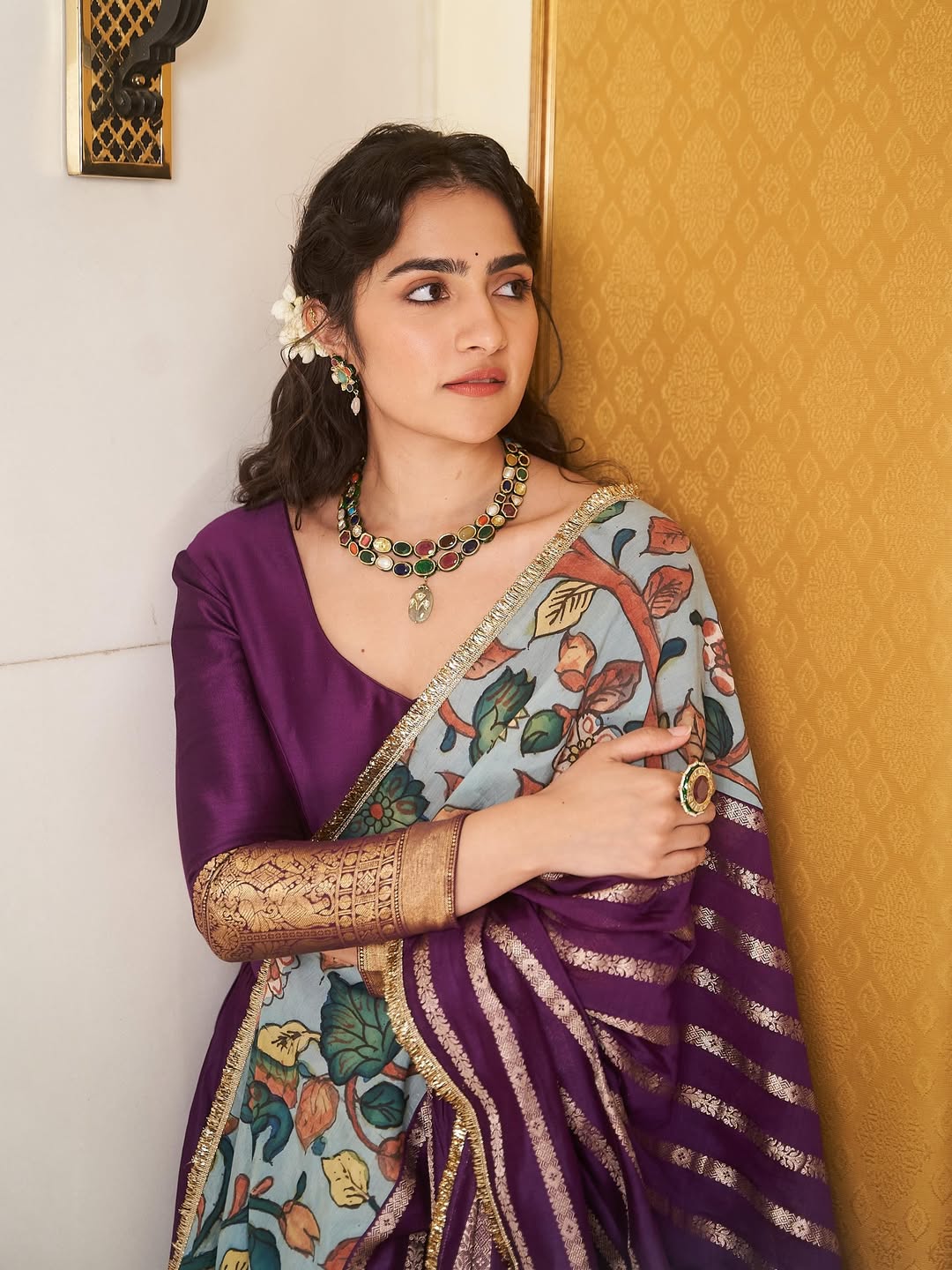For this look, the actress wore jewelry from the brand Kundankali which included an elegant necklace that complemented her saree. The dress was styled by Pooja Karanam with additional support from the styling team Rutuja Styles and Keerthi Madhusudan. The picture was beautifully captured by photographer Saurabh Sonkar, while her soft wavy hairstyle was done by Yashdeep S and her makeup was handled by Abhilasha.