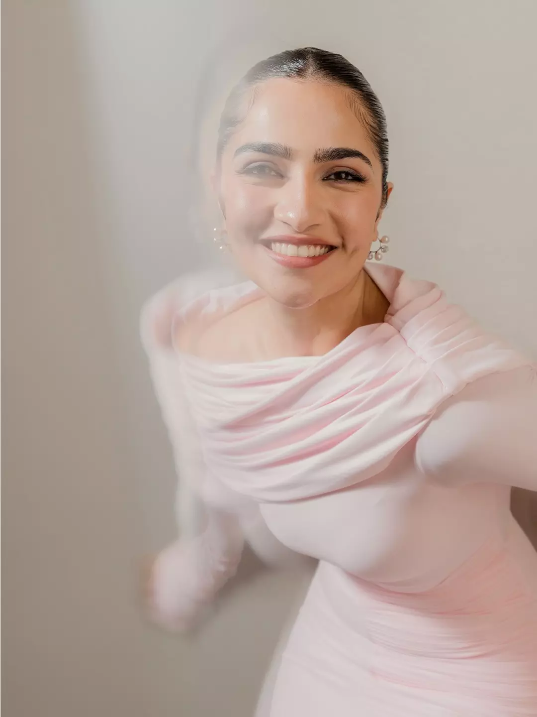 Rukmini Vasanth Stuns in a Dreamy Pink Off-Shoulder Gown