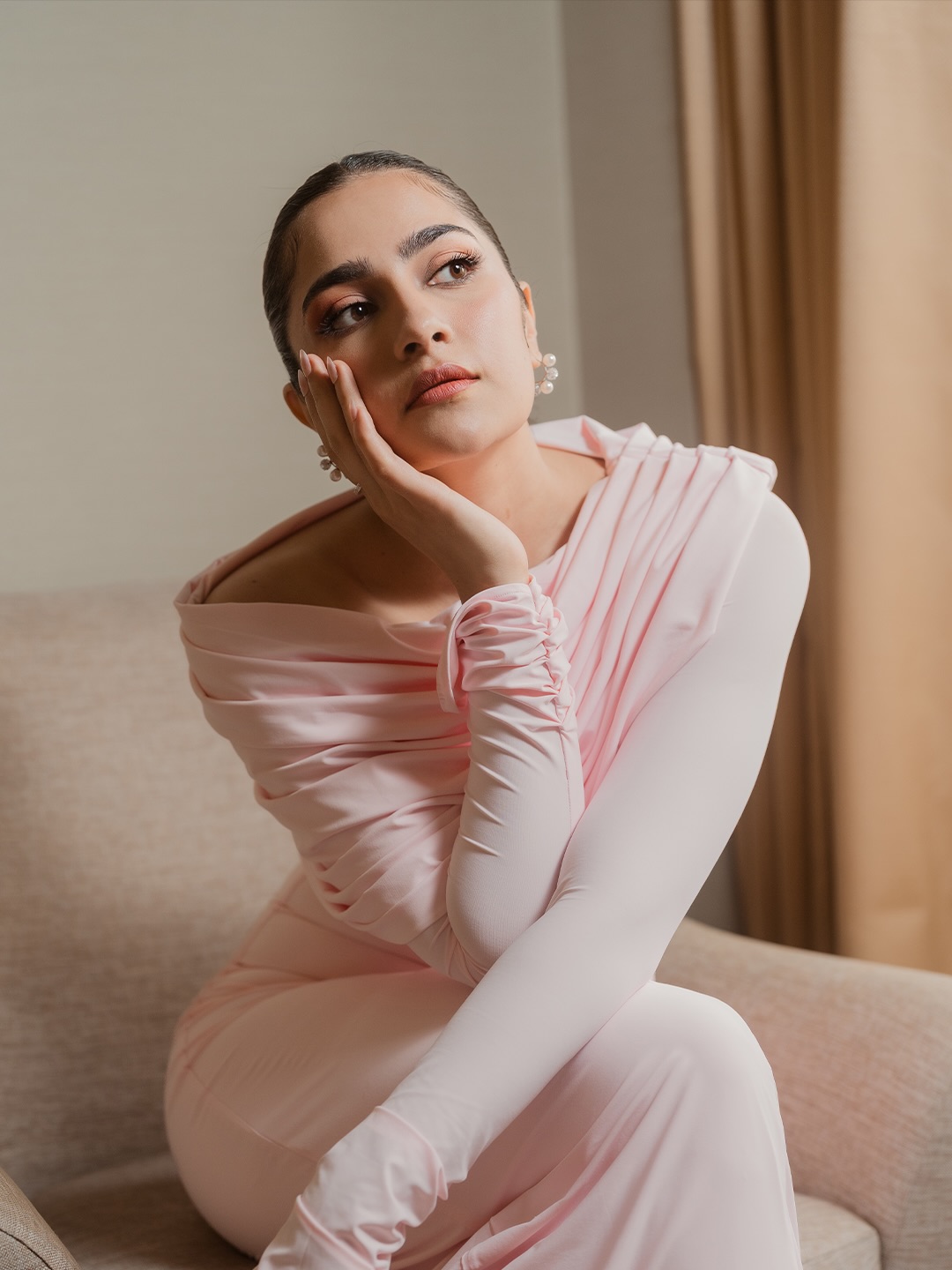 By: Tupaki Gallery Desk | 28 April 2026 6:00 PM ISTRukmini Vasanth looks absolutely mesmerizing in this elegant pink ensemble, captured beautifully by @dhruvnarangphotography. Draped in a soft off-shoulder gown from @deme_love_, she brings effortless grace and dreamy charm to the frame. Styled by @aasthasharma with @reannmoradian (assisted by @harshita0105 ), with flawless hair by @swapnilkashid_ and makeup by @nikitashak, the look perfectly highlights her poise and subtle intensity.