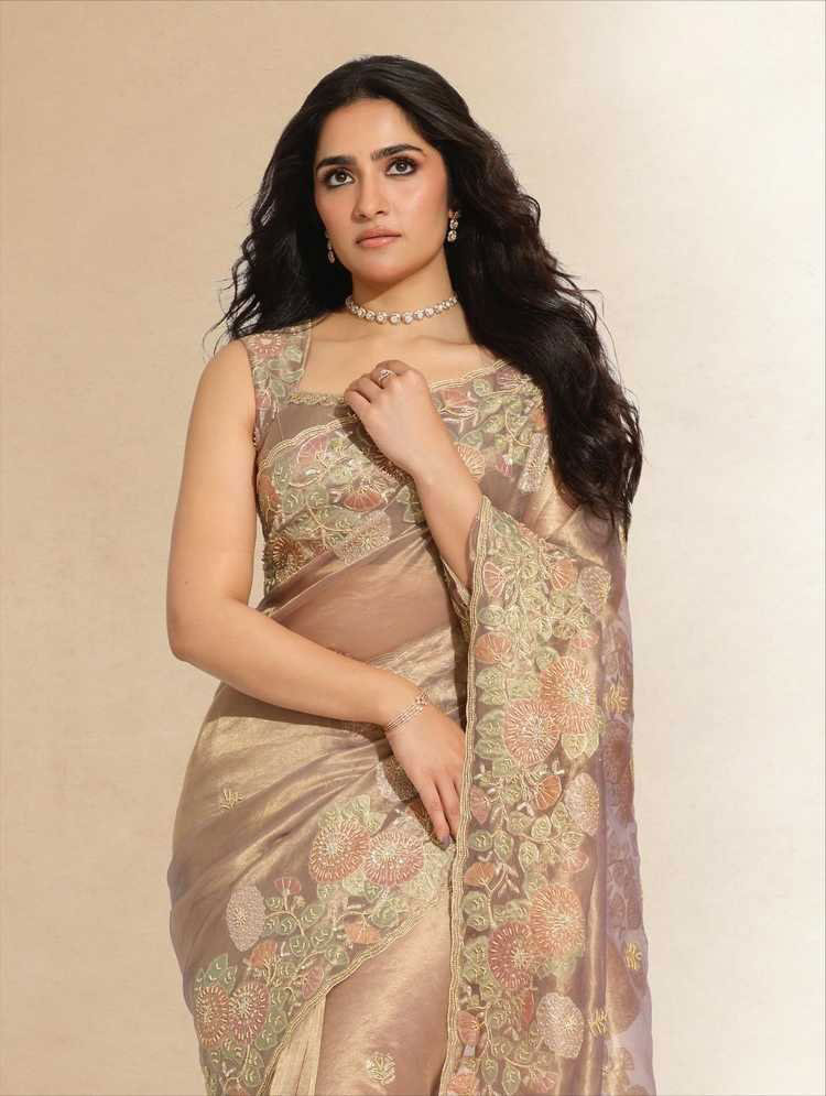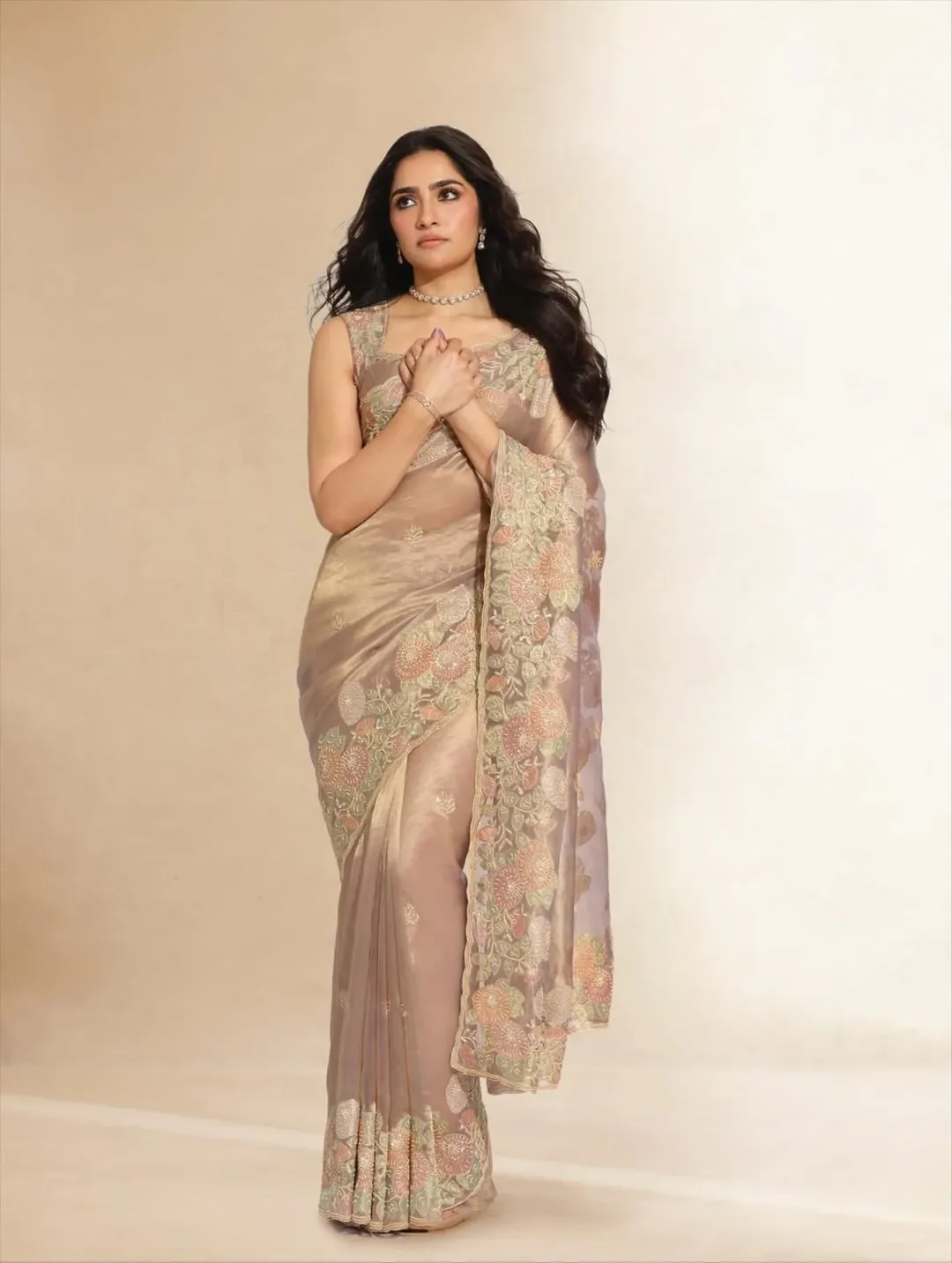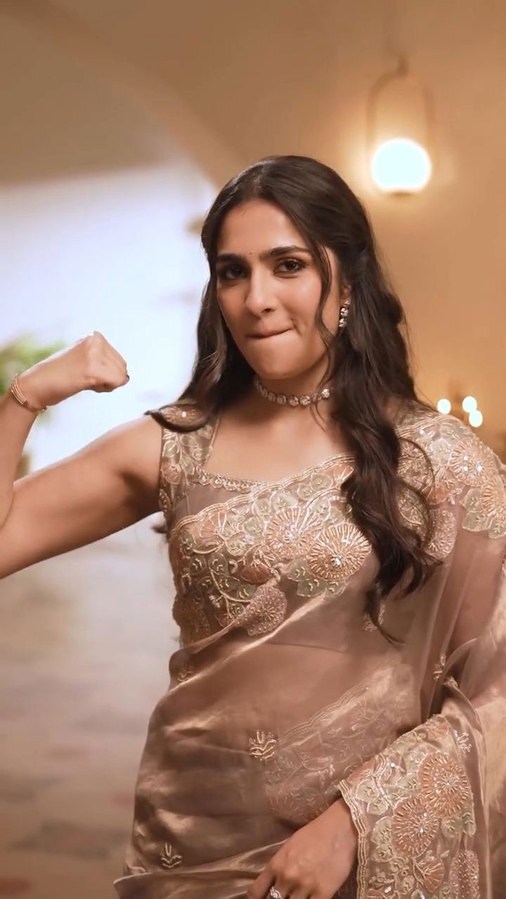 Draped in a vibrant saree with intricate detailing, she radiated grace and sophistication, effortlessly blending traditional charm with contemporary style.