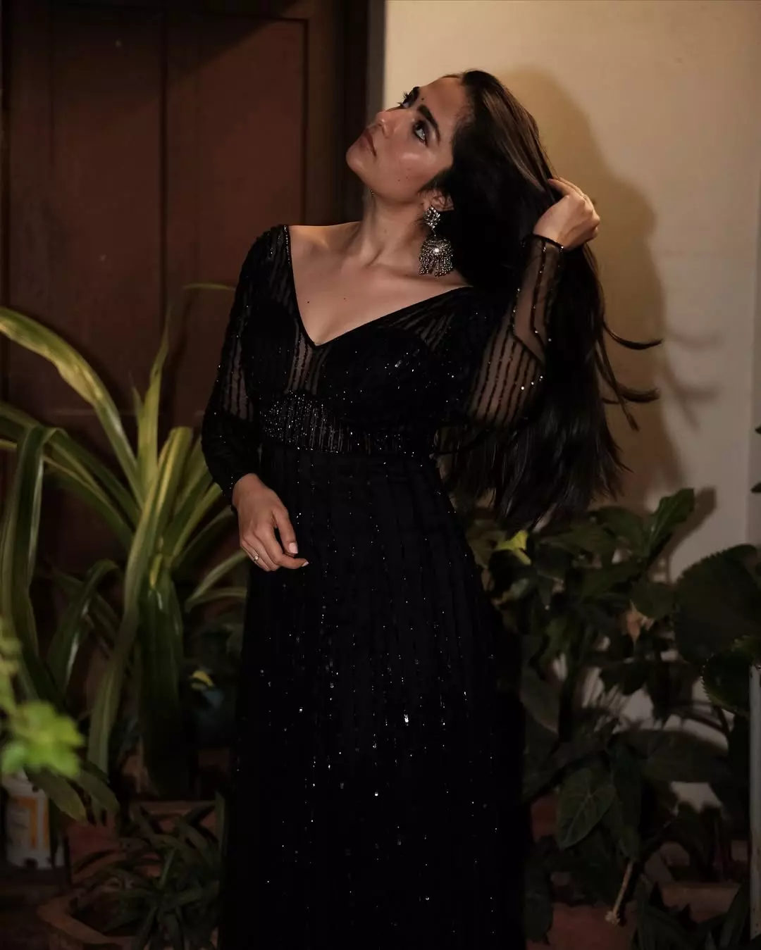 This look perfectly complements her rising stature in the film industry, where she continues to impress audiences with her performances and screen presence.