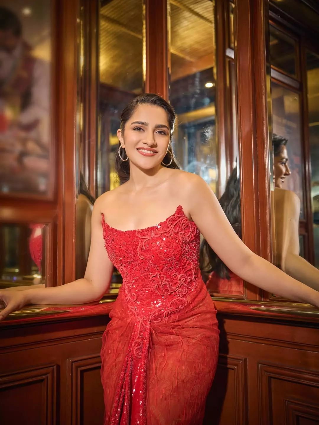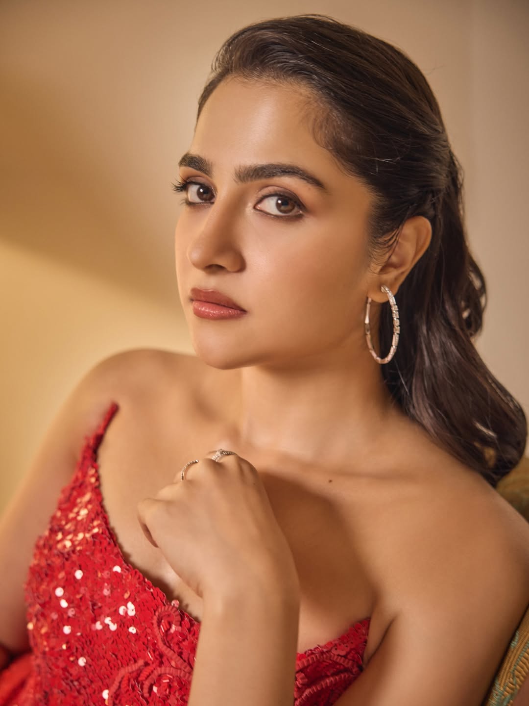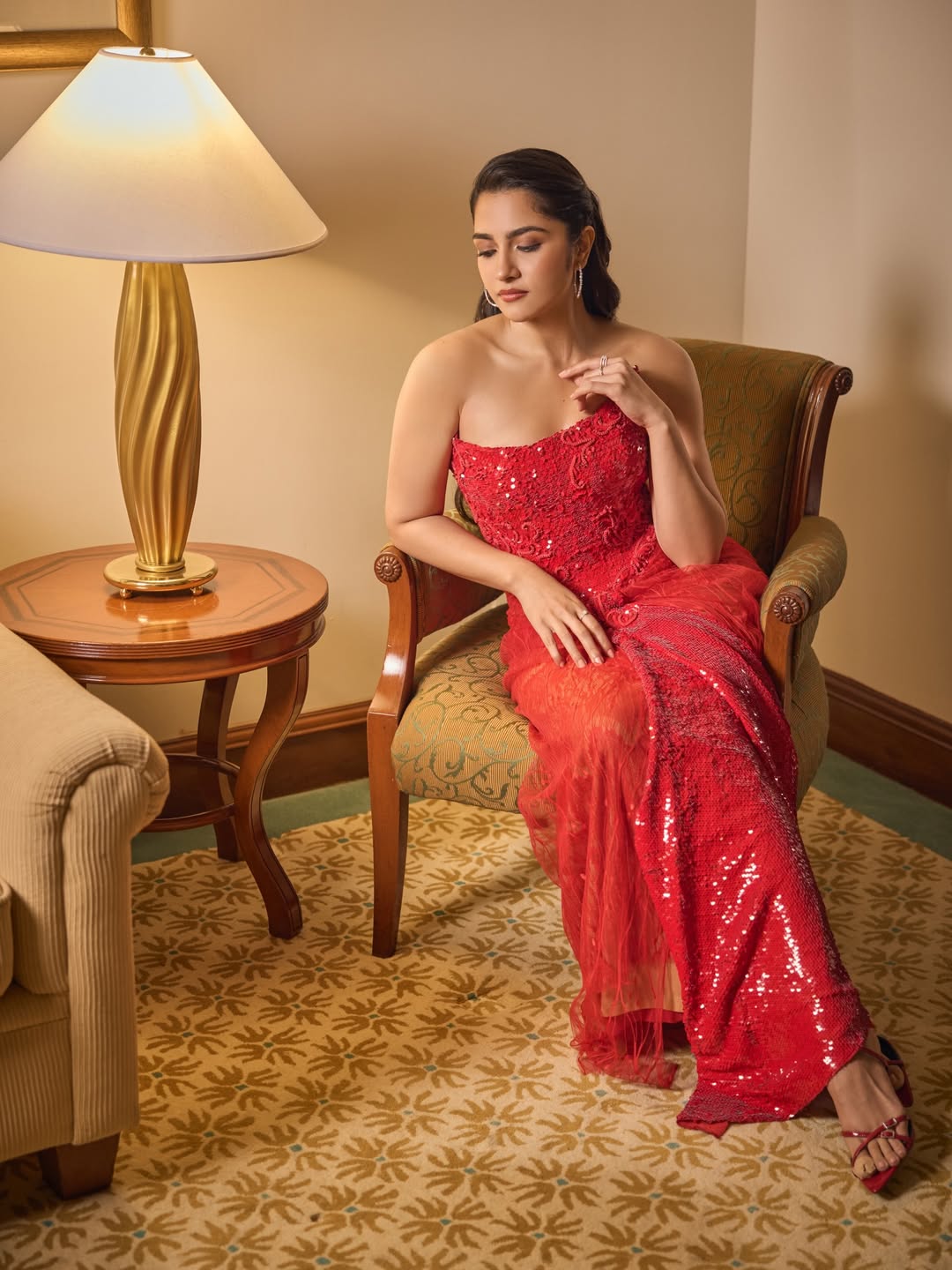 Rukmini Vasanth is winning hearts once again with her latest glamorous photoshoot, where she looks absolutely radiant in a striking red designer outfit.