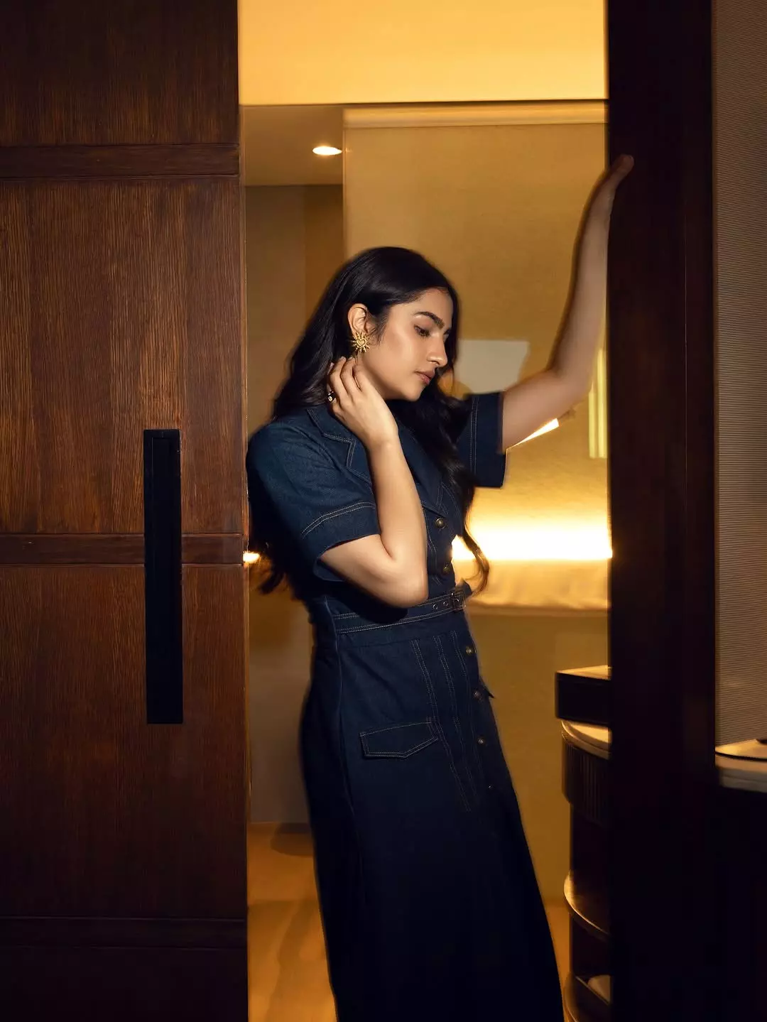 Rukmini Vasanth’s latest Instagram post is turning heads online. The Kannada actress posted a photo wearing a dark denim dress with soft waves in her hair, glowing makeup and classy pose. She captioned it, "Couldn’t pick which I liked best so 💃 here 💃 is 💃 the 💃 photodump 💃.”