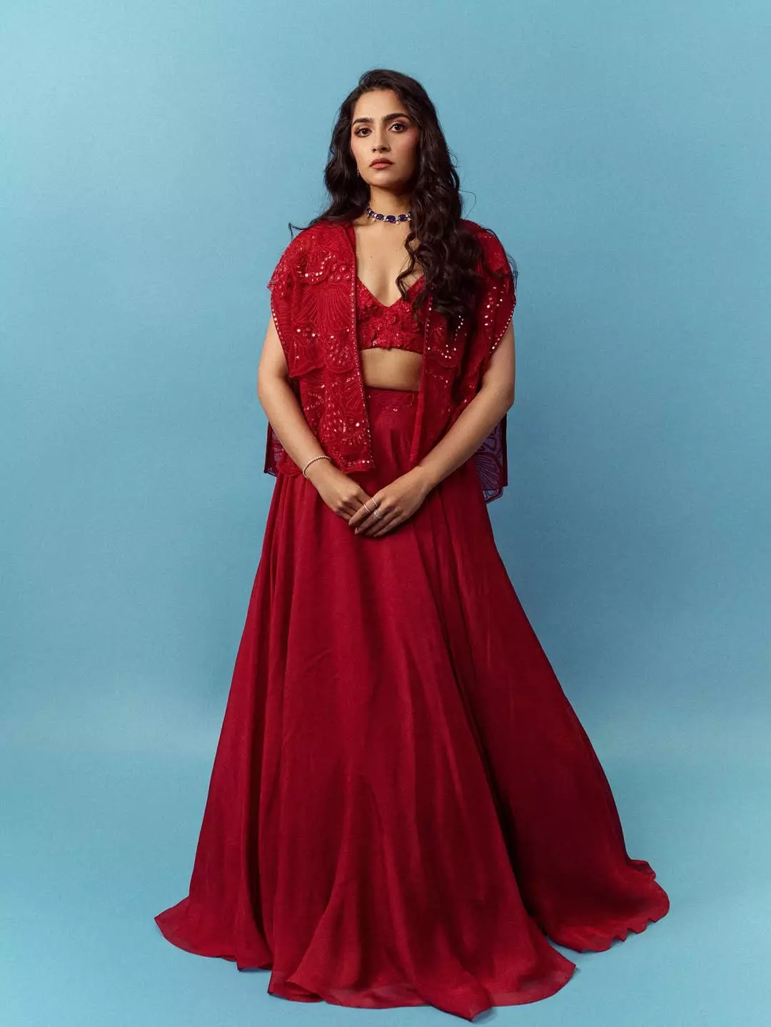 Rukmini Vasanth shared a new post on Instagram. She looks graceful in a red ensemble that adds a touch of charm to the frame.