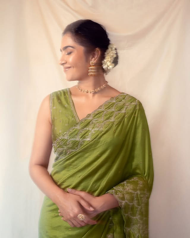 Her caption reads, “Hyderabad lights, #Madharaasi nights✨.” The picture is supported by a talented creative team. She mentioned @mishruofficial for the dress. She tagged @jatinmorjewels for jewellery. The styling is by @poojakaranam, with the help of @keerthi.madhusudan. The photo was captured by @akshay.rao.damera. Makeup is done by @vaishnavisingh2.0, and hair styling by @chakrapu.madhu. This teamwork makes her post shine even more.