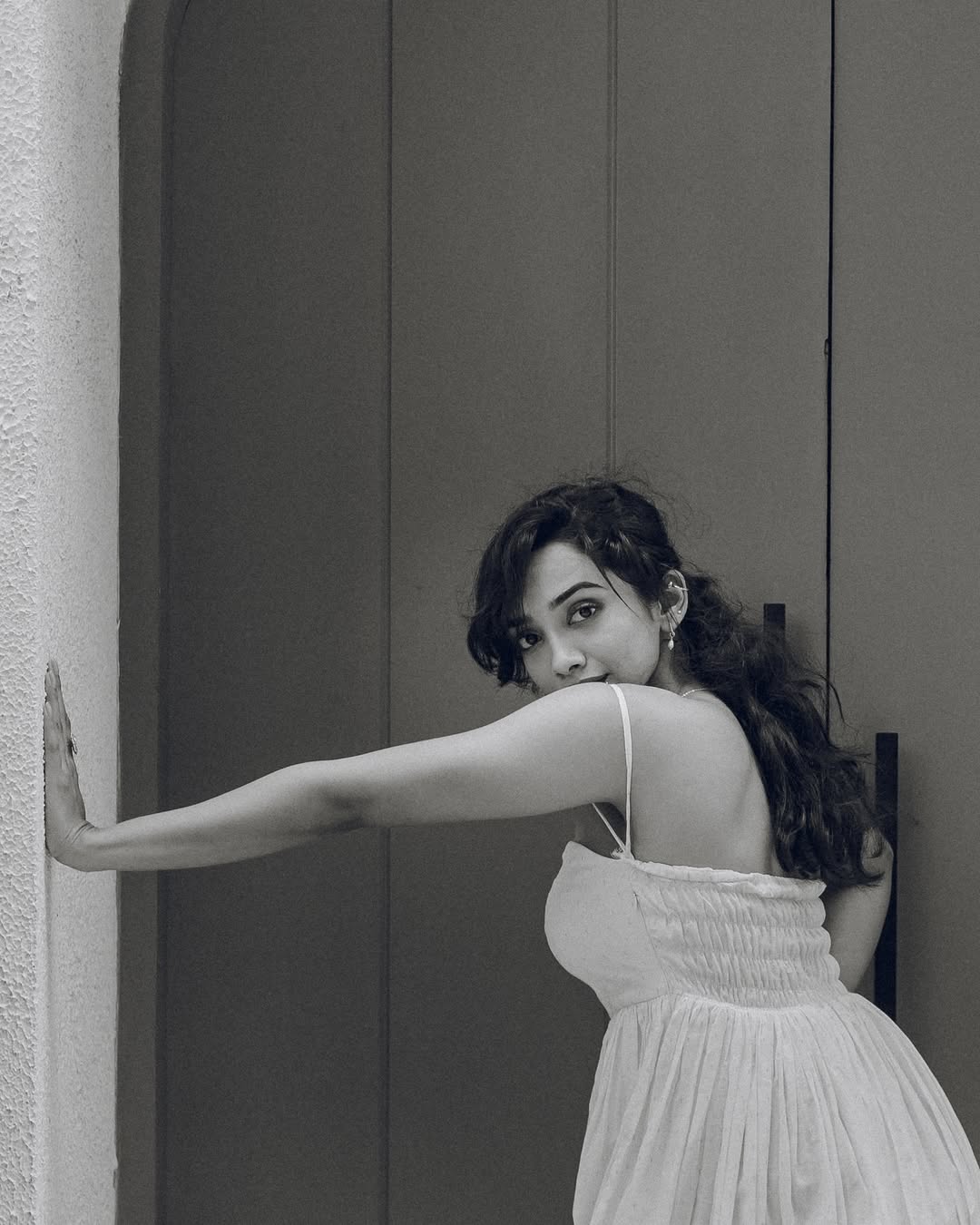 Saanve Megghana sparks playful curiosity in this captivating photo, draped gracefully in a red saree with a dazzling smile that lights up the frame. Her casual yet charming pose paired with the witty caption � �Game: If you had to give me a name, what would you name me?� � invites fans to engage and admire her fun, down-to-earth vibe. Beauty meets personality, and this moment is pure gold.