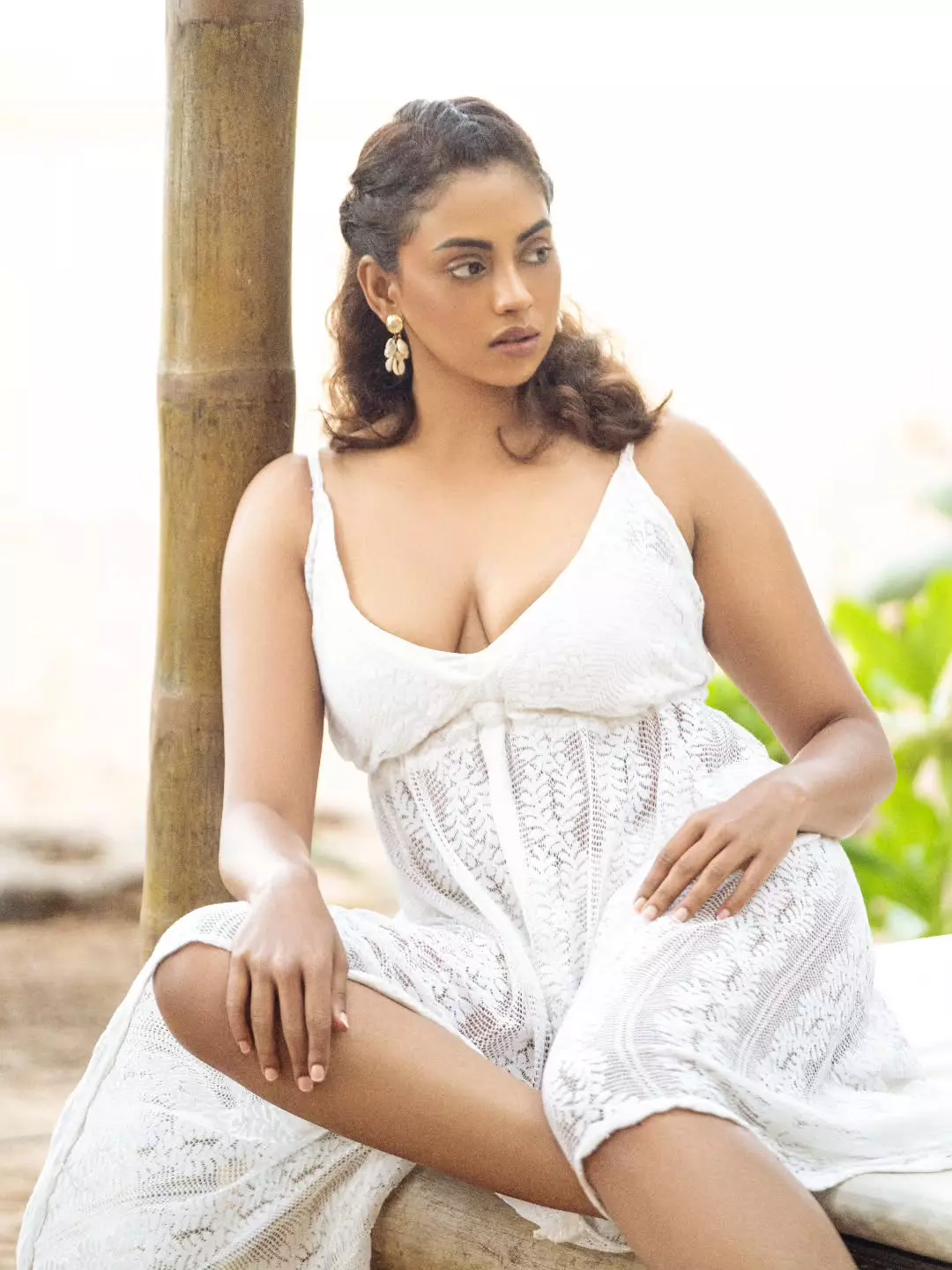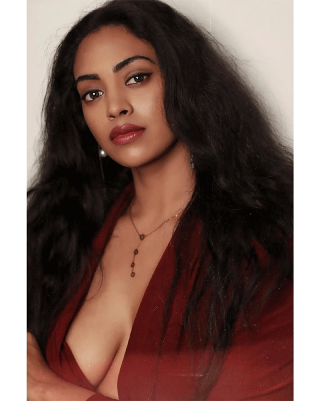 In this captivating studio portrait, Sai Kamakshi Bhaskarla (also known as Kamakshi Bhaskarla) exudes confidence and sensuality.