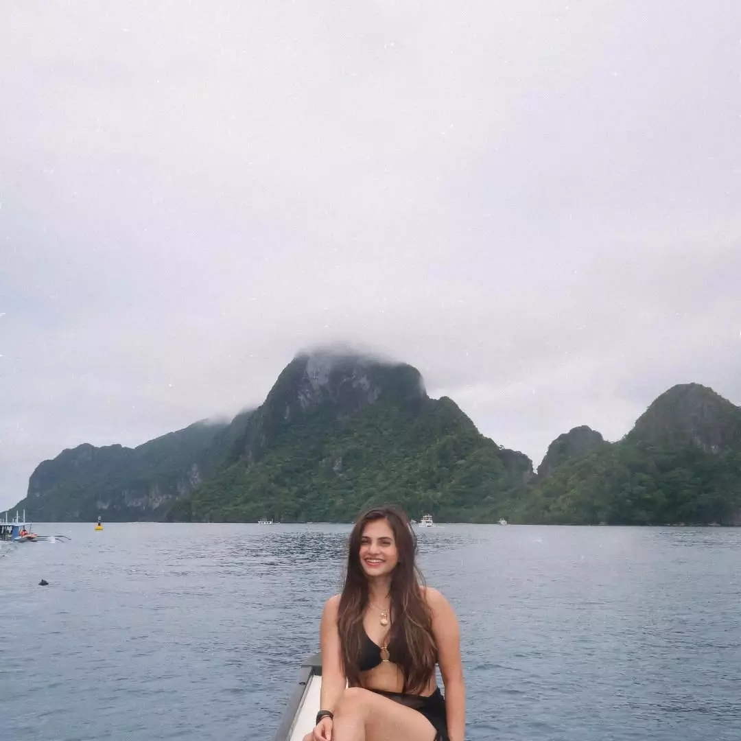 In this captivating snapshot, Sai Ramya Pasupuleti embodies the essence of a carefree tropical getaway, perched gracefully on a sleek white yacht against a backdrop of endless azure skies and shimmering emerald waters.