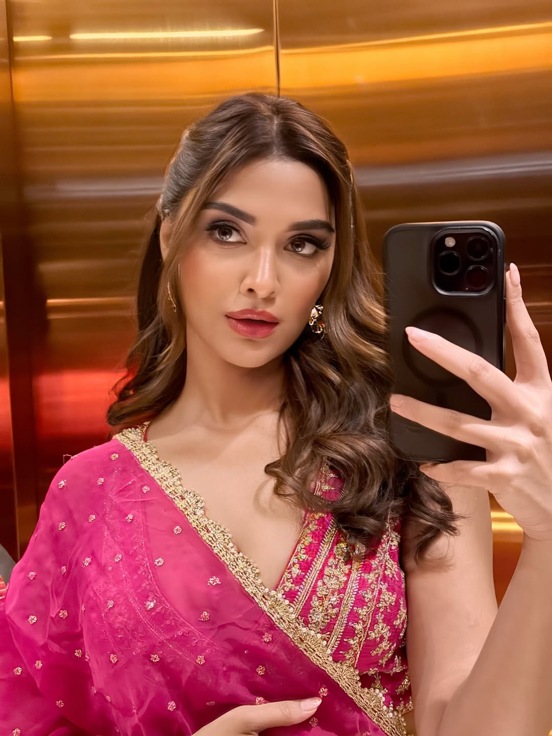 In this latest shoot, the fusion of the pink saree, soft sunset light, and Saiee’s radiant poise created a dreamy, elegant visual story. Once again, she proves why she is one of Bollywood’s most fashion-forward stars, effortlessly exuding sophistication and charm.