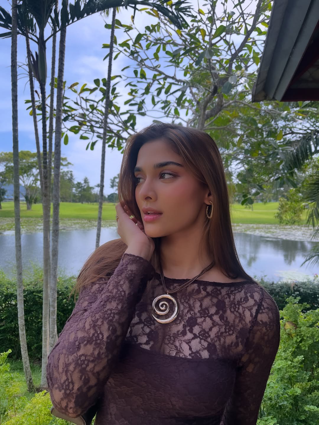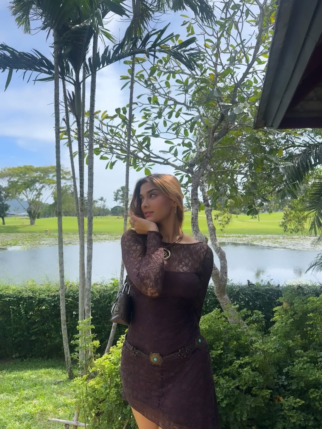 In the photo, Saiee is seen donning a gorgeous deep plum lace dress that hugs her silhouette beautifully, offering the perfect blend of sophistication and flirtiness. The sheer full sleeves and asymmetrical hemline add a touch of drama, while a statement belt with gemstone detailing elevates the outfit with a boho-chic edge. Her accessories subtle gold jewelry and a sleek shoulder bag complete the look effortlessly.