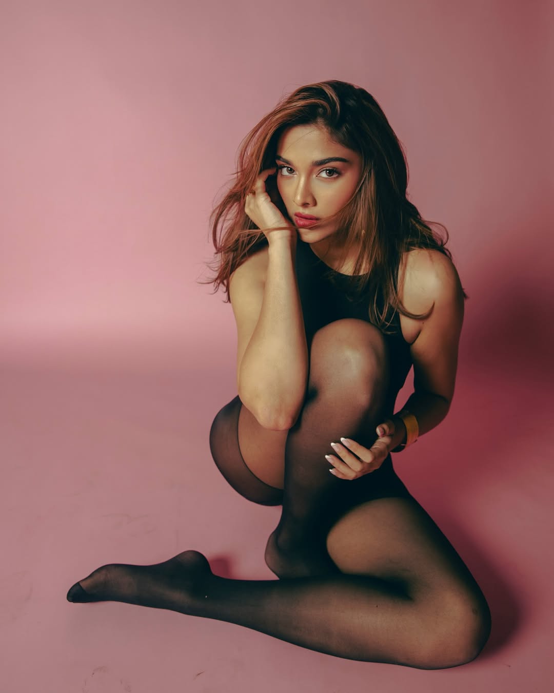 In the photo, Saiee is seen donning a gorgeous deep plum lace dress that hugs her silhouette beautifully, offering the perfect blend of sophistication and flirtiness.