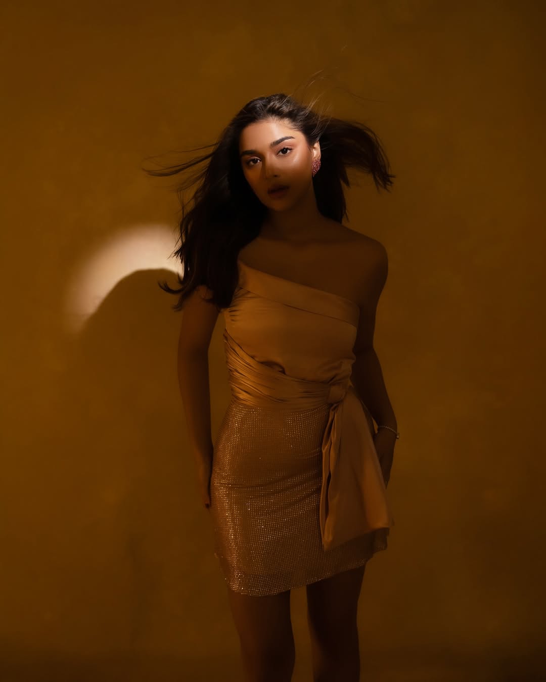 Saiee’s caption for the post said, “goldennnnn ✨”. She tagged her team to credit their work. The photo was clicked by @samrat.02. Her styling was done by @kmundhe4442. Hair and makeup were handled by @monashairandbeauty. Her dress was from @distractshion. She wore footwear by @ellegantiofficial.