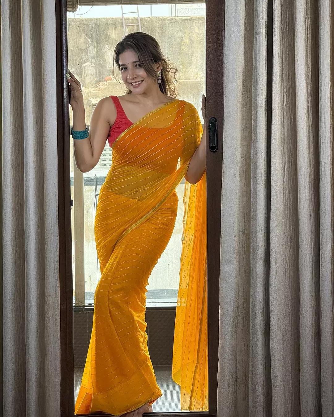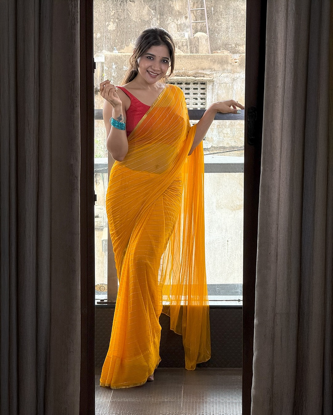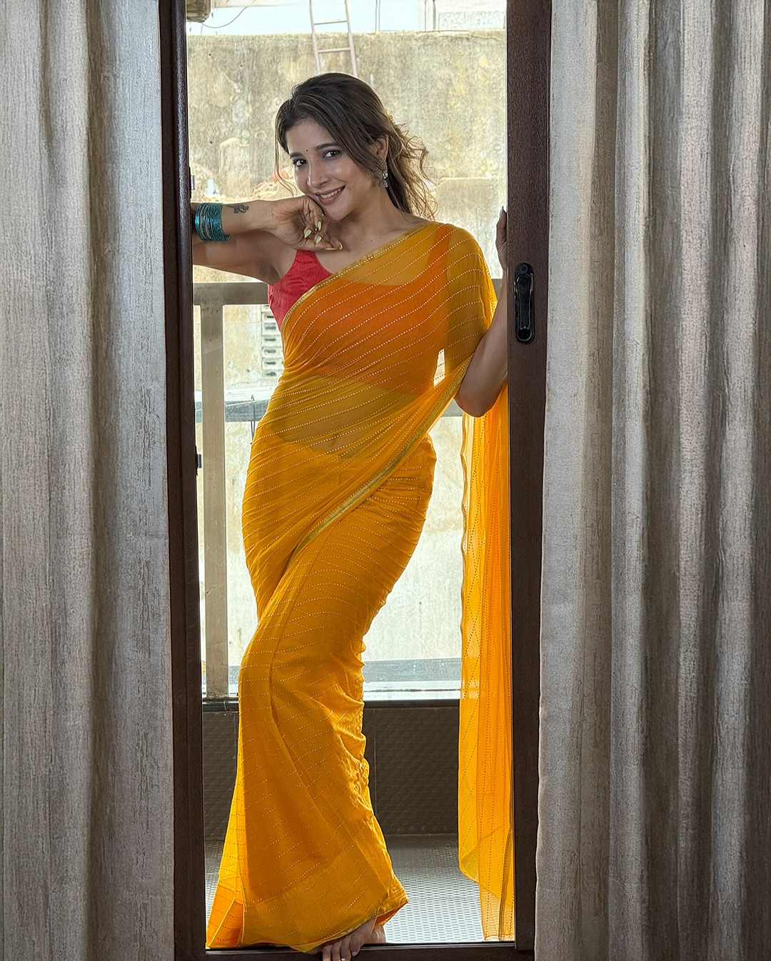Sakshi Agarwal is known for her vivacious charm and acting skills. She recently shared a bright and cheerful moment on Instagram.