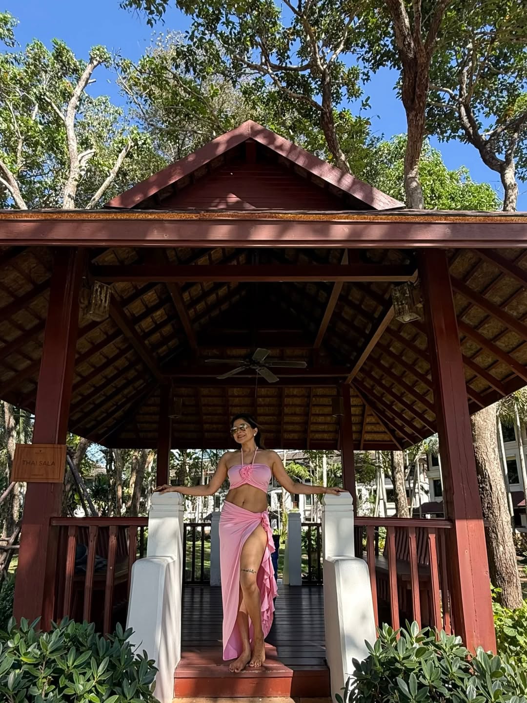 Against the tranquil backdrop of Phuket, Sakshi’s swimwear choice blends seamlessly with the tropical landscape while subtly highlighting her dedication to fitness and holistic well-being. The soothing pink tone brings a sense of freshness and calm, while the fluid silhouette allows for natural movement—ideal for sunlit escapes and reflective moments by the ocean.