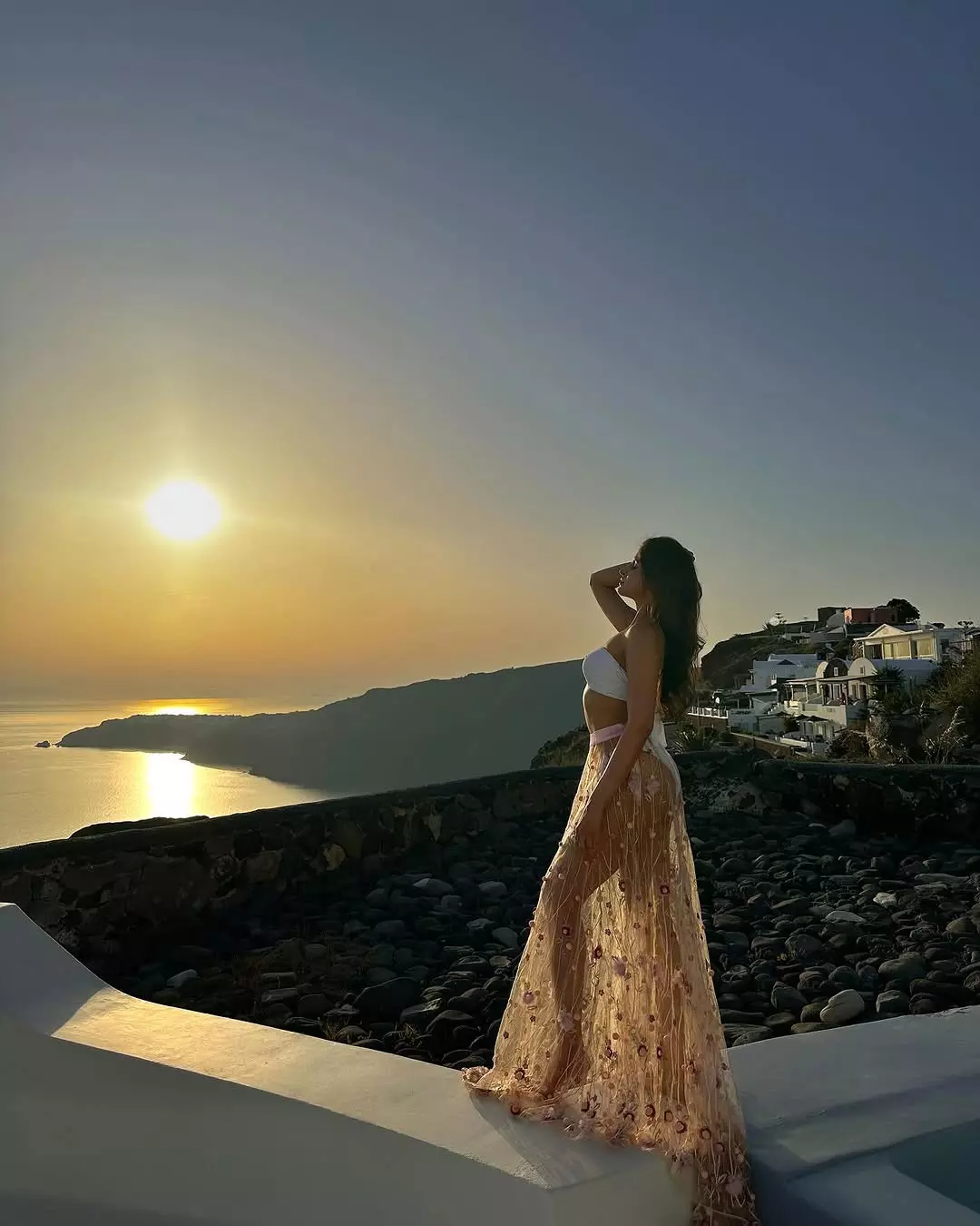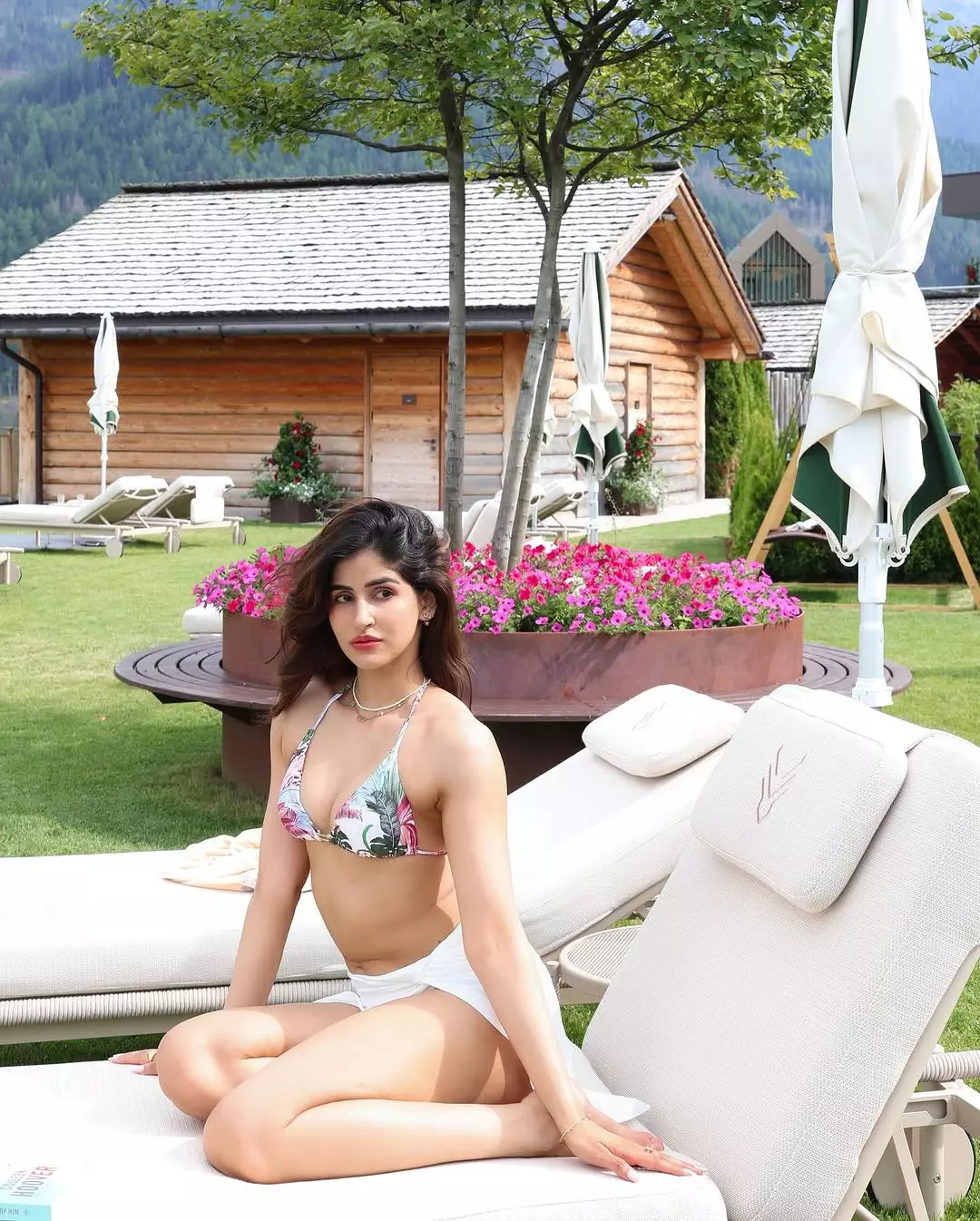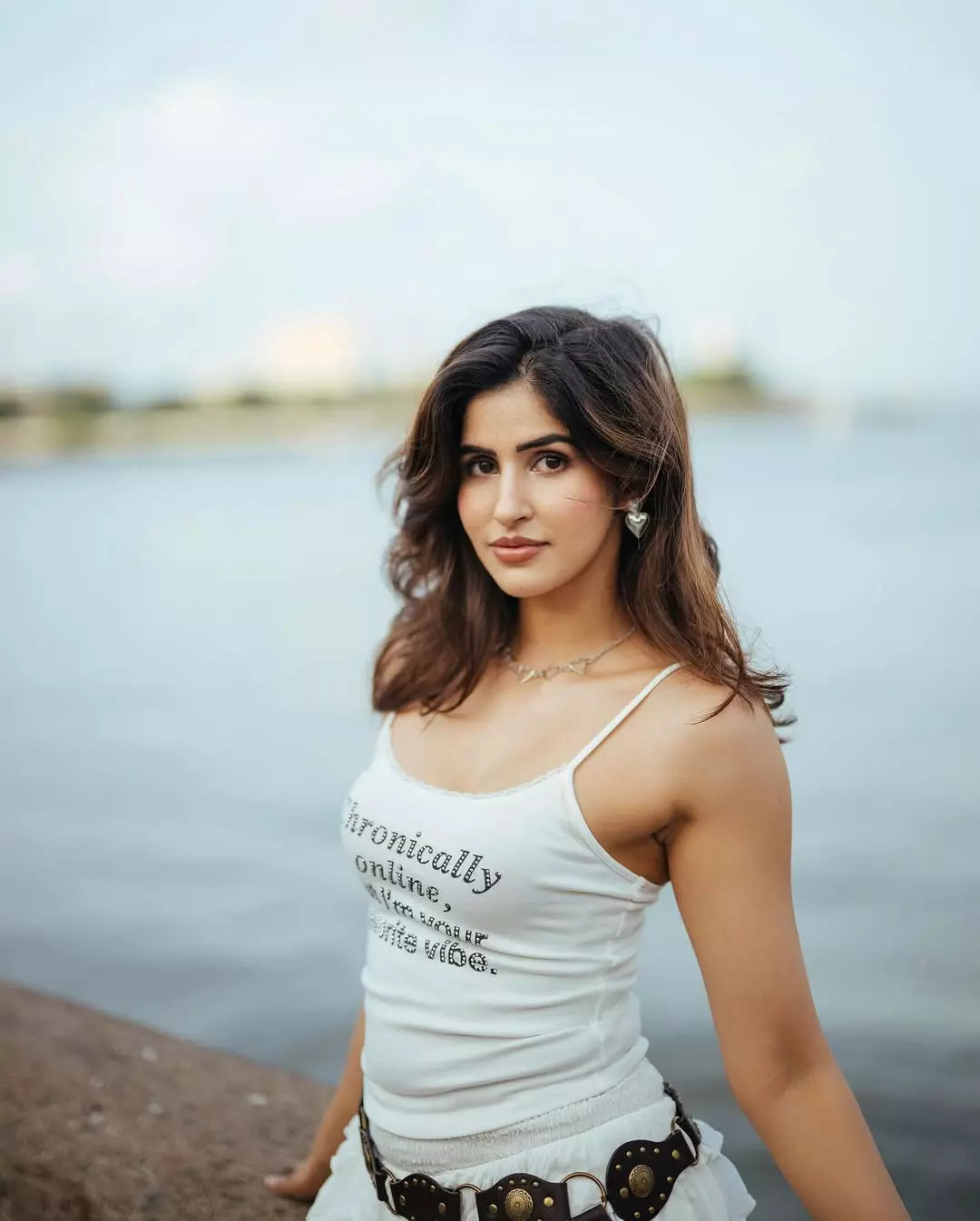 Model and actress Sakshi Malik turned up the heat with a confident and elegant photoshoot in a white bandeau bikini paired with a flowing beige lace cover-up. Standing barefoot on a pristine white pebble shore beside a sleek pool with a scenic coastal backdrop, she exuded effortless summer vibes and fitness charm.
