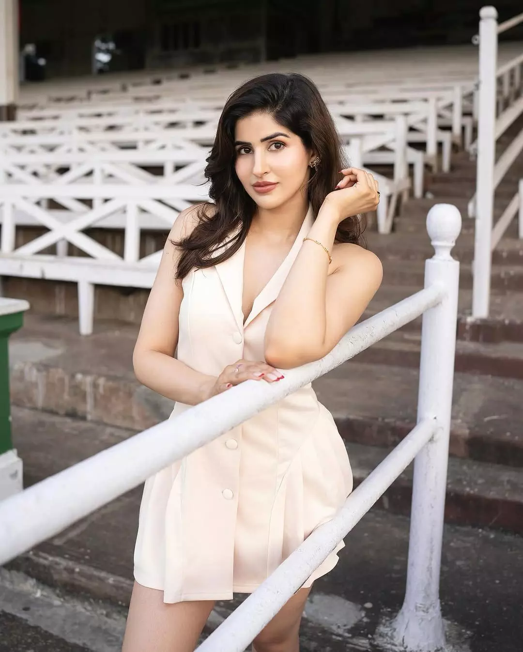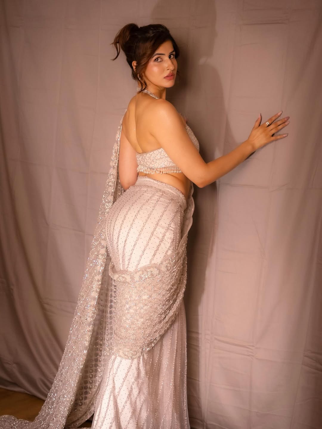Wearing a dazzling ensemble from @sanyasinghlabel, Sakshi blended traditional elegance with modern glamour. The outfit featured rich textures, festive hues, and a contemporary silhouette that highlighted her figure while staying rooted in cultural flair. What truly caught attention, though, was her playful hairstyle — a creative mix of sleek tied-back elements with soft, open waves cascading down, offering the best of both worlds.