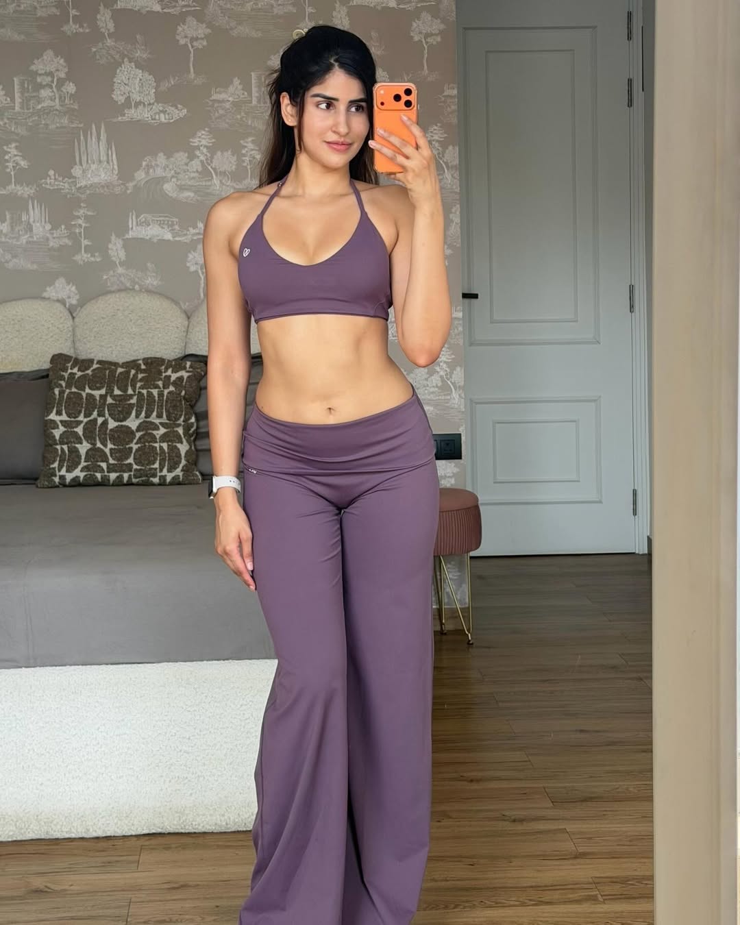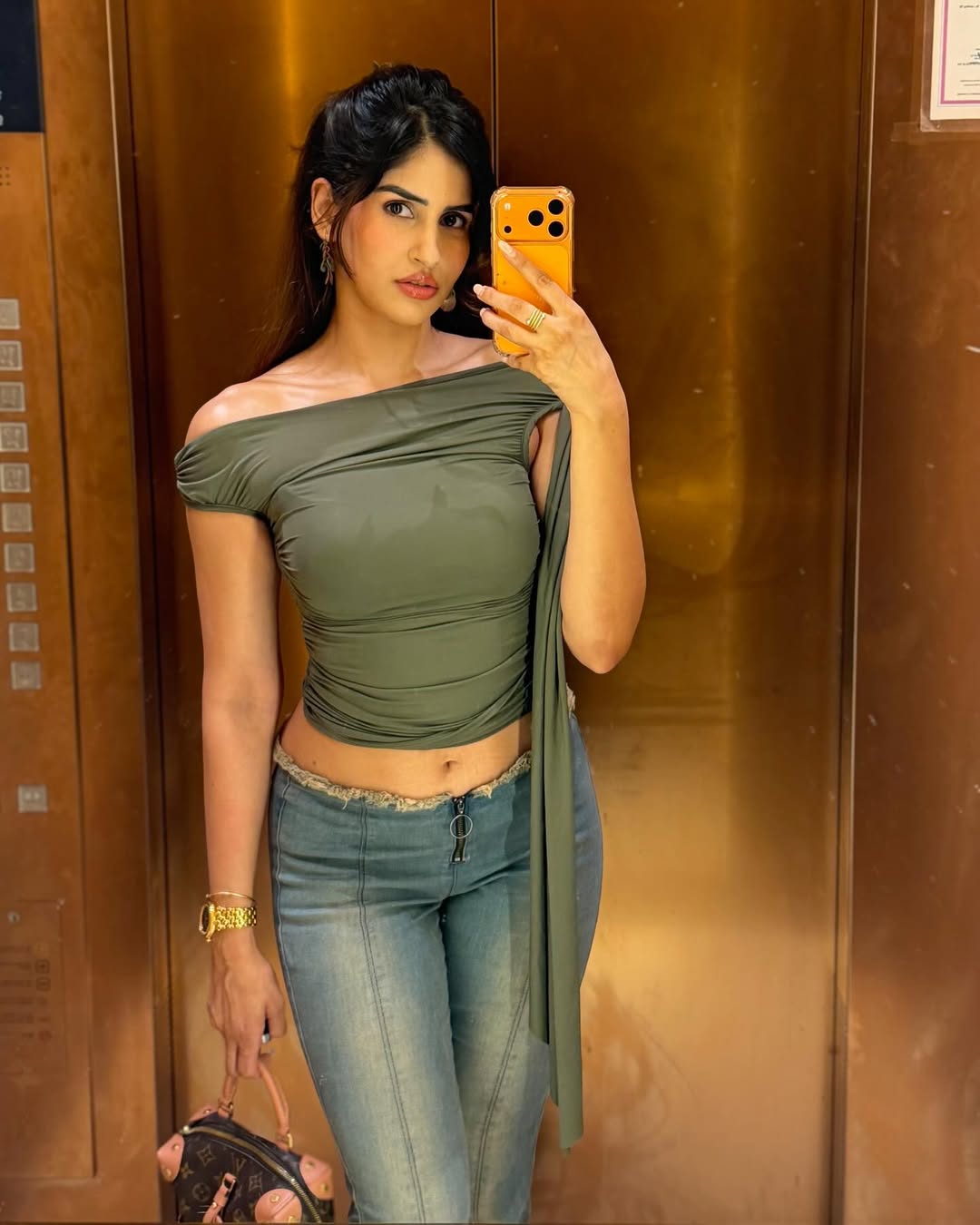Sakshi Malik, a stunning Indian actress, model, and fitness influencer, captivates with her latest glimpses in Life lately . These mirror selfies showcase her toned physique in a sleek purple sports bra and high-waisted leggings during a gym session, radiating confidence and strength. She also stuns in a flirty pink strapless mini dress with side ties, exuding playful elegance, and a sultry sheer brown maxi dress with draped details, highlighting her glamorous side against metallic elevator backdrops.