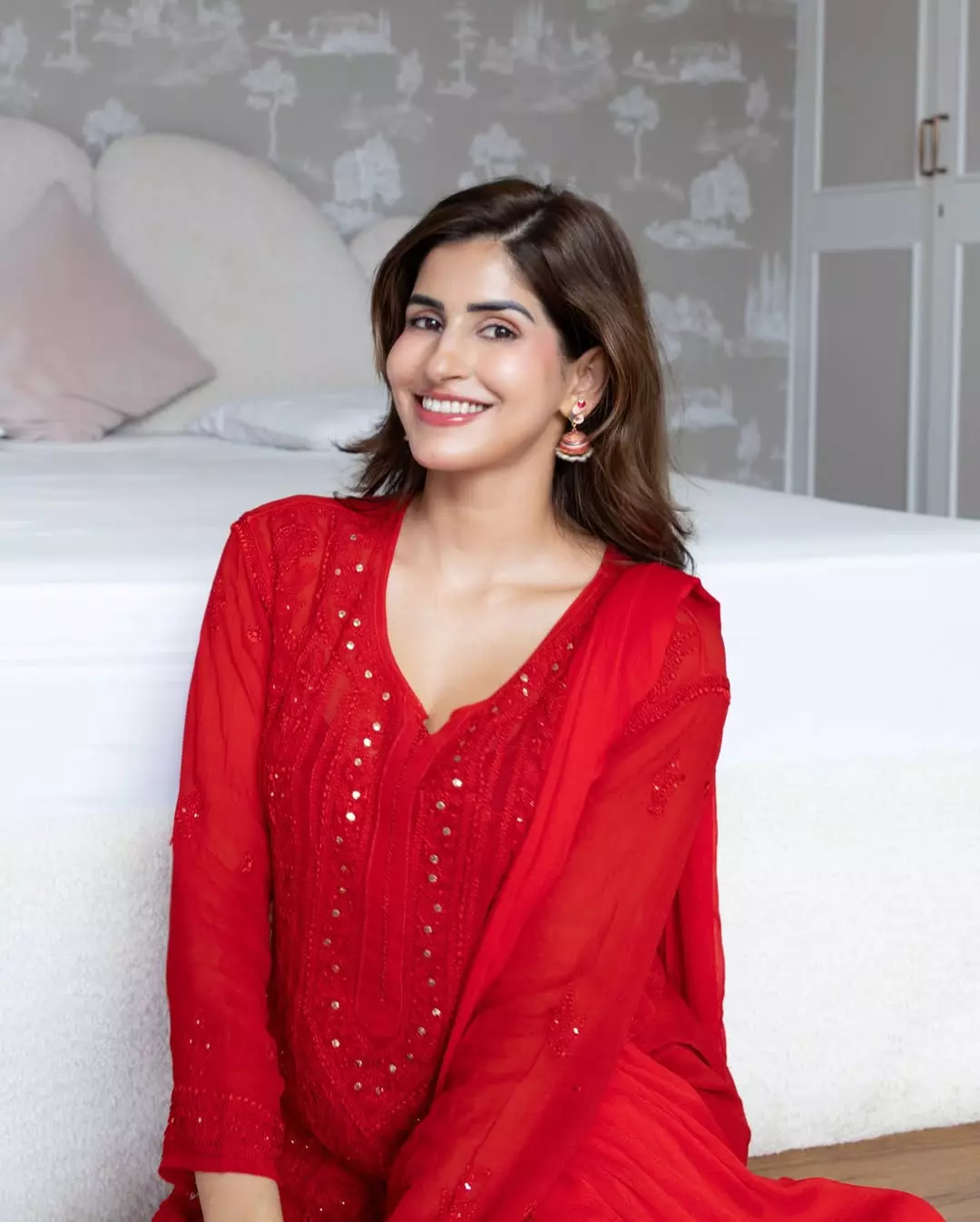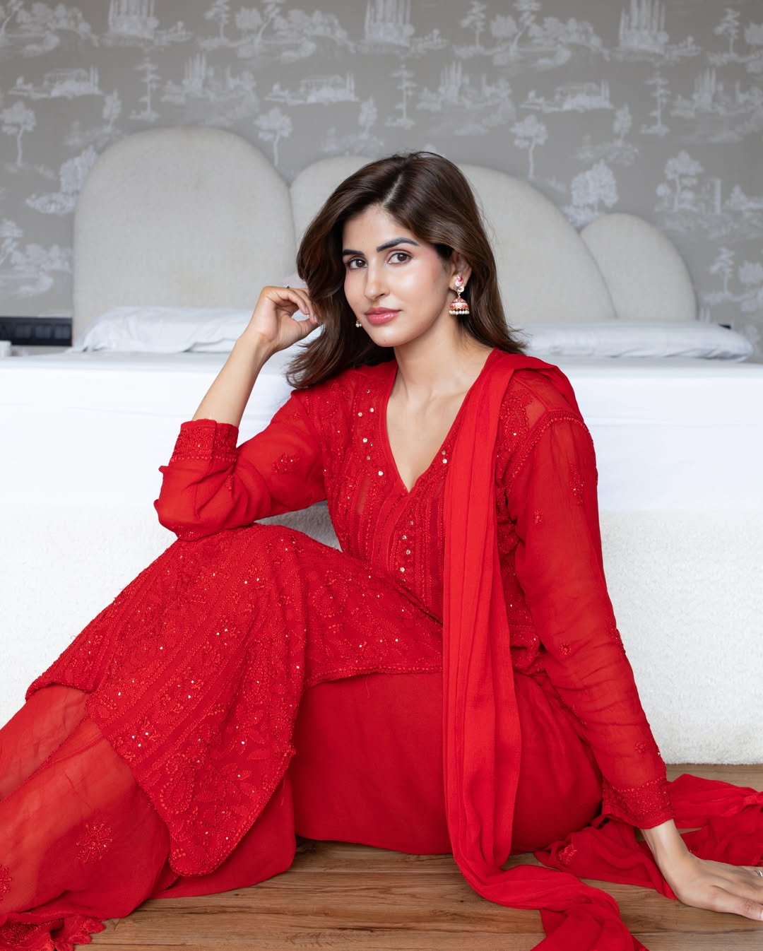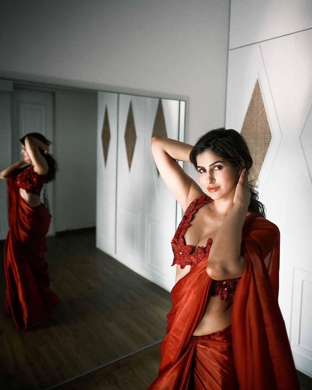 Sakshi Malik has posted a new photo on Instagram. She is seen in a red saree with a finely crafted blouse.