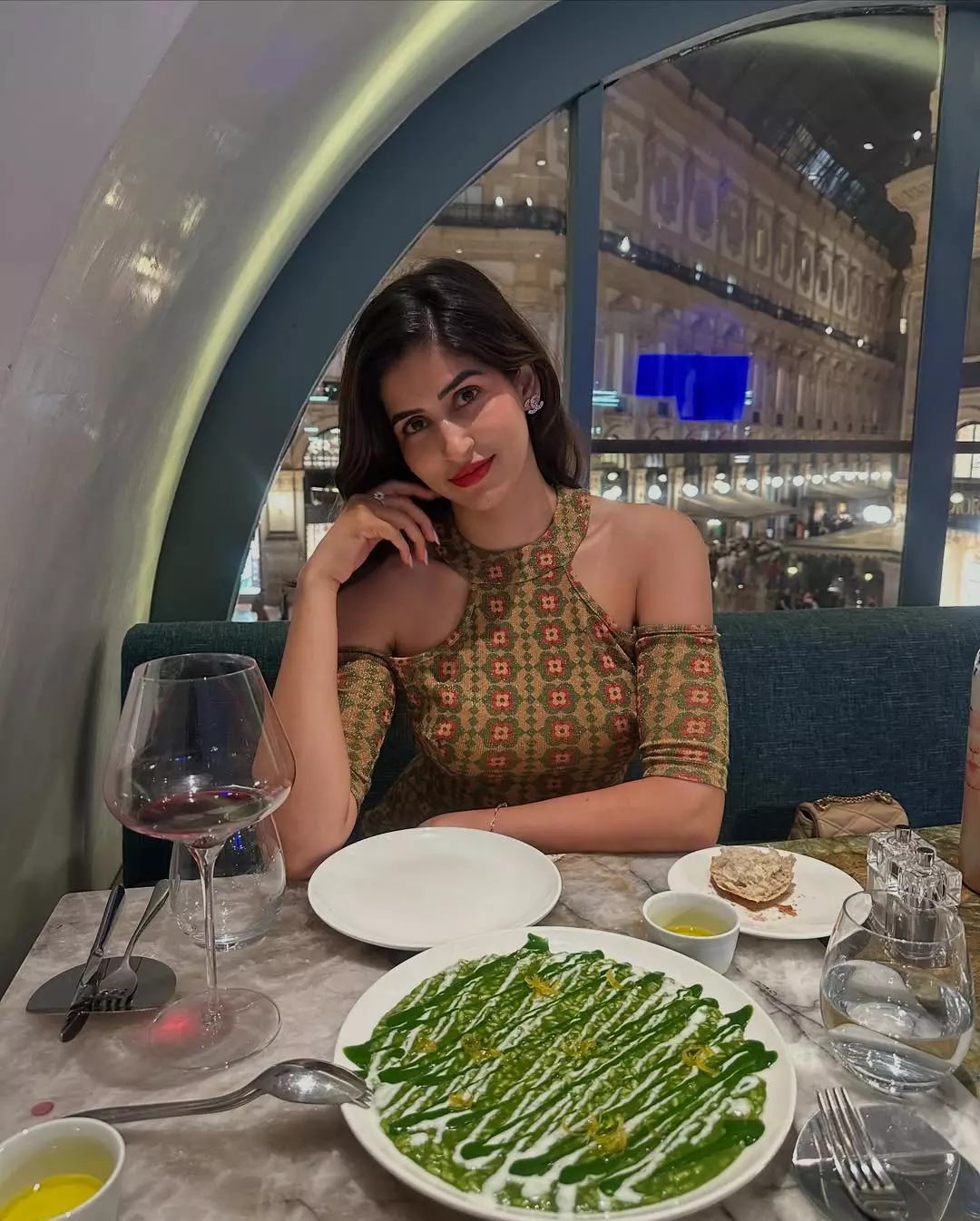 Mannat Gupta has provided the dress for the actress while she has posed for the pictures at Galleria Vik Milano.