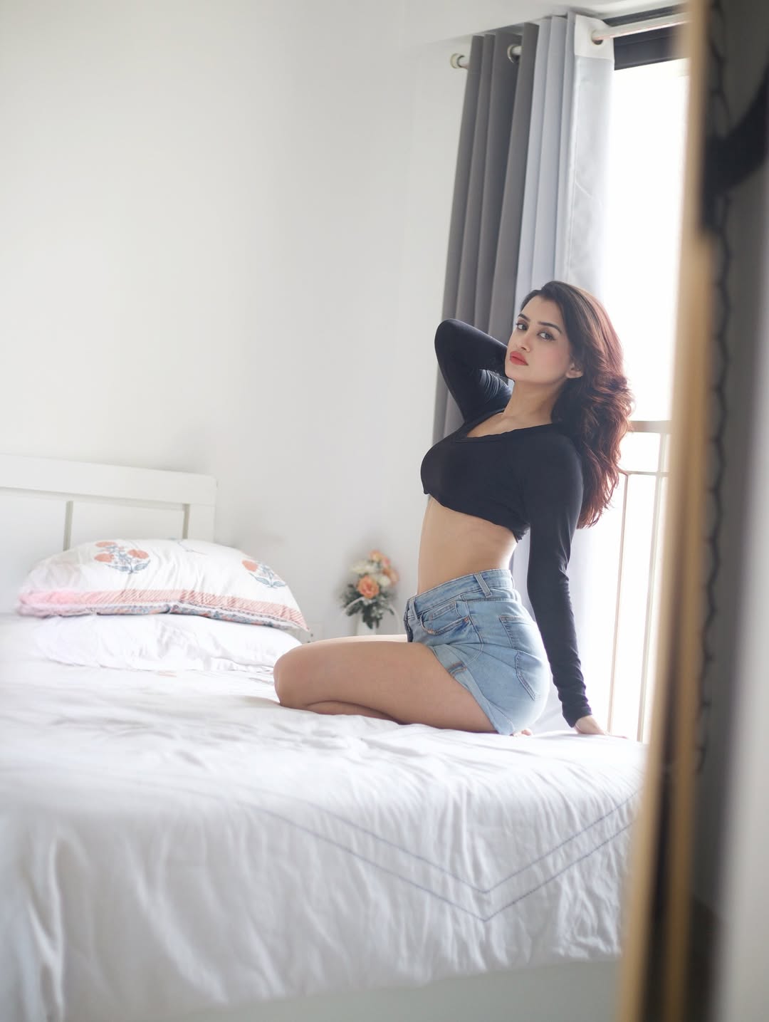 Like many actors, she also posed to camera while sitting on the bed and emoting with different expressions.