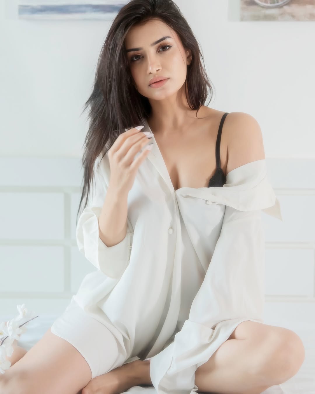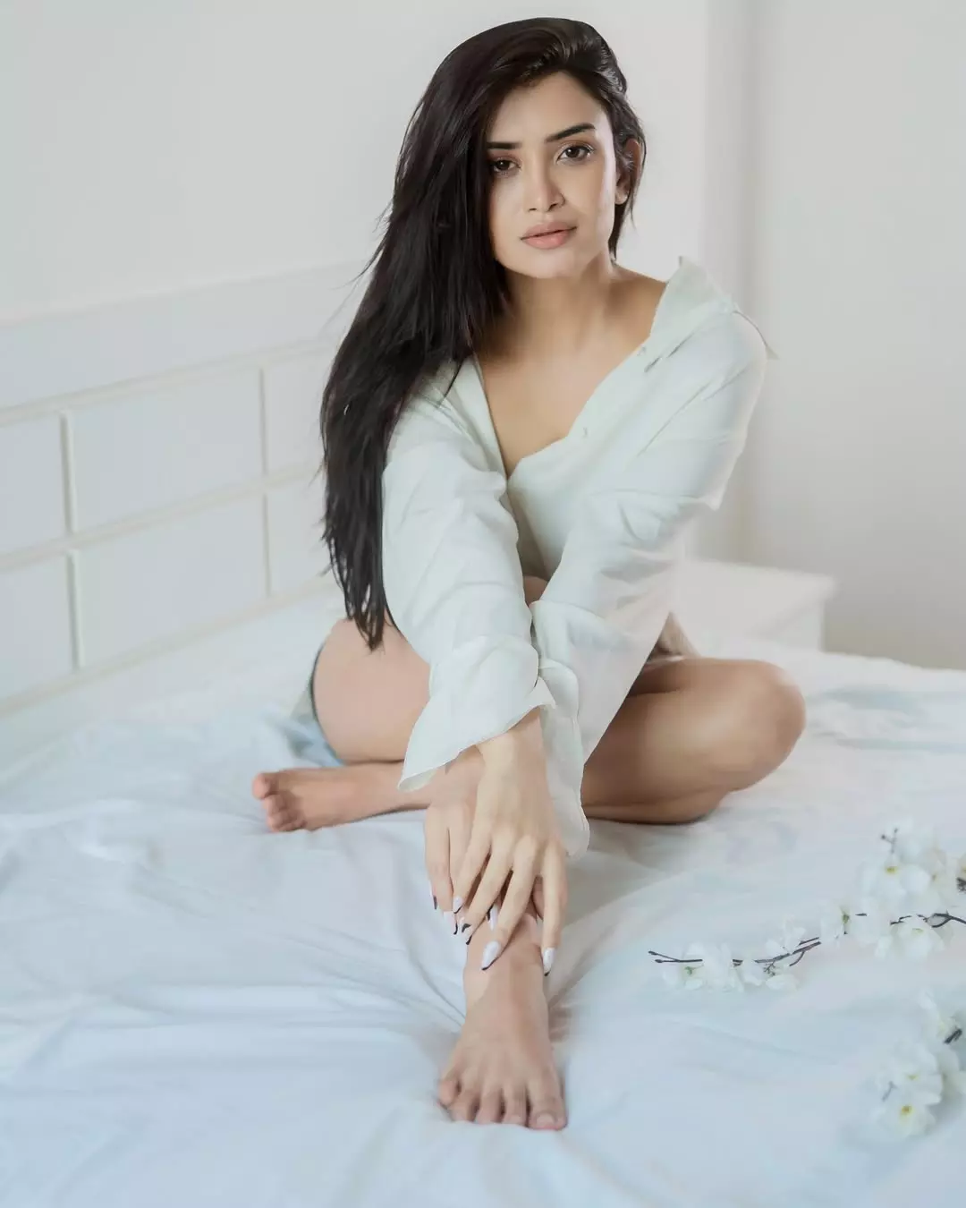 Like many actors, she also posed to camera while sitting on the bed and emoting with different expressions. She looks simple with minimal makeup, and left her hair loose. By default, she is very good and it reflects in the pictures as well.