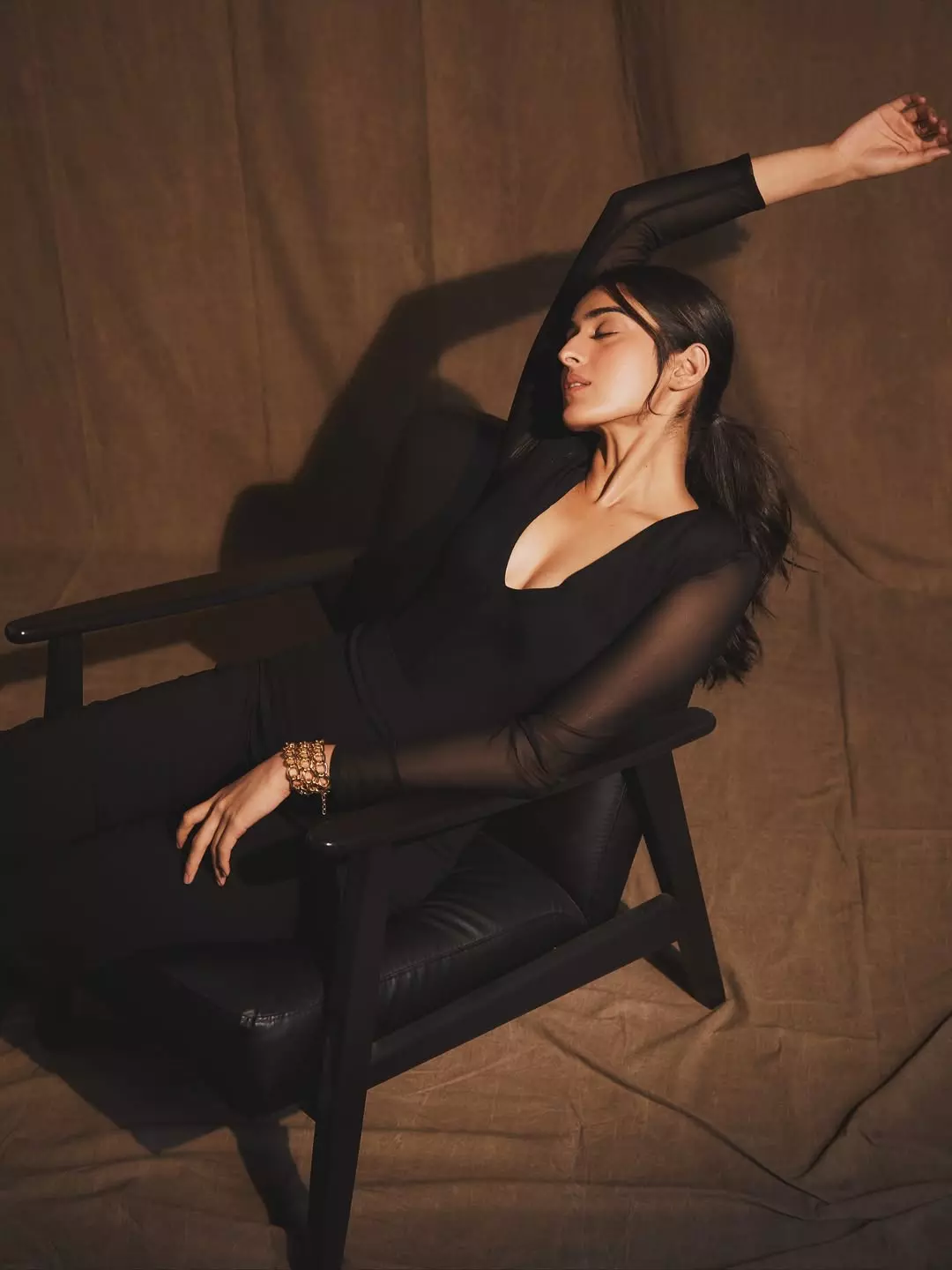 Sakshi Vaidya recently shared a warm moment from Calicut. She is seen sitting on a soft beige sofa dressed in a classy sleeveless gown in a light golden shade. She looks more than awesome in the snaps. In her caption, she thanked Calicut for its love and beauty, and she wrote that the people and the place now hold a piece of her heart.