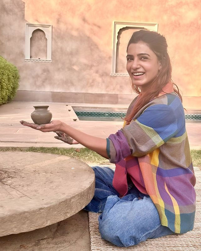 The highlight of the post was an unseen picture from her wedding with filmmaker Raj Nidimoru. The photo showed the couple in traditional wedding clothes, sharing a light-hearted moment. Raj was seen making a funny face, while Samantha laughed beside him. She also added a caption “ You are not lucky but aligned.”