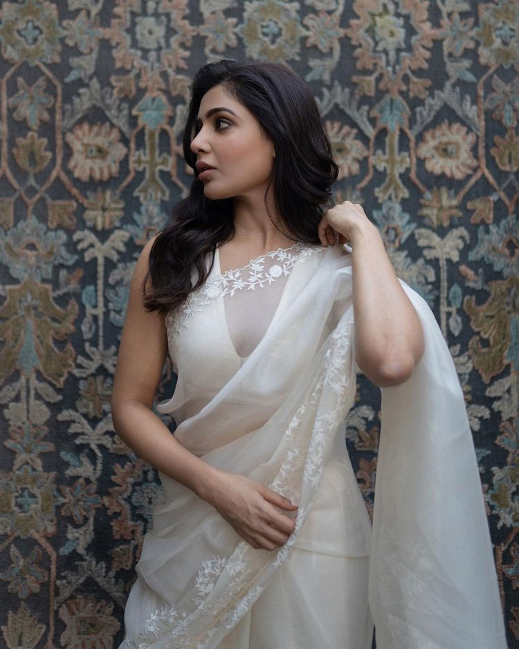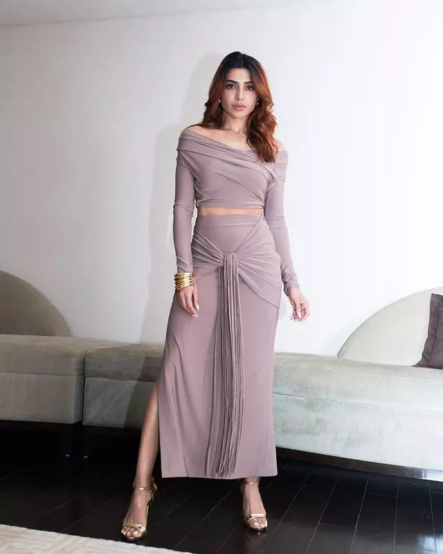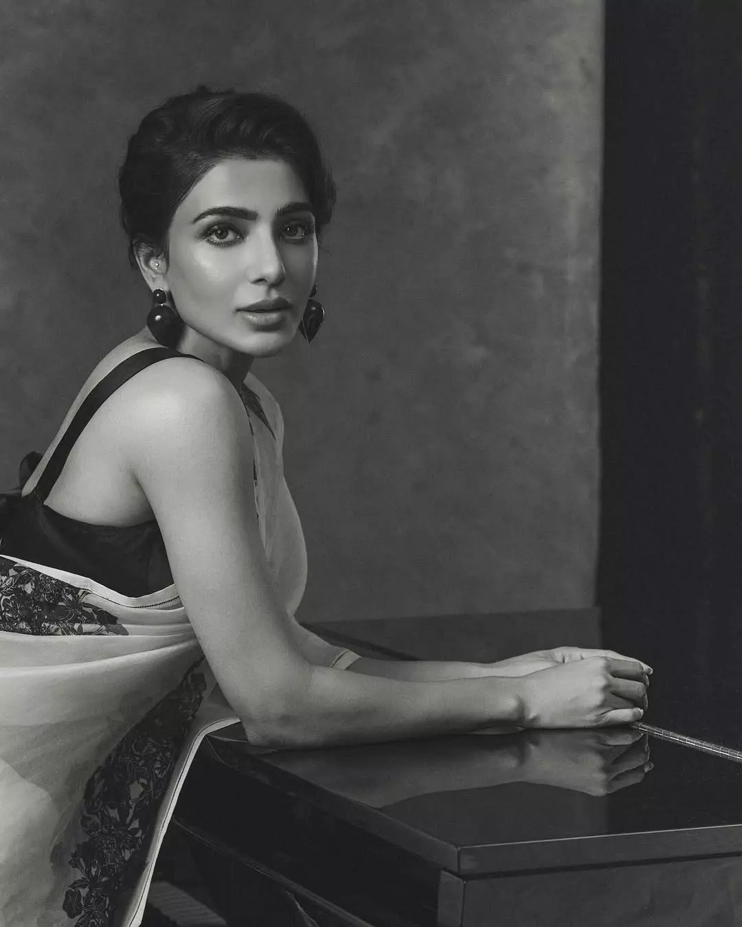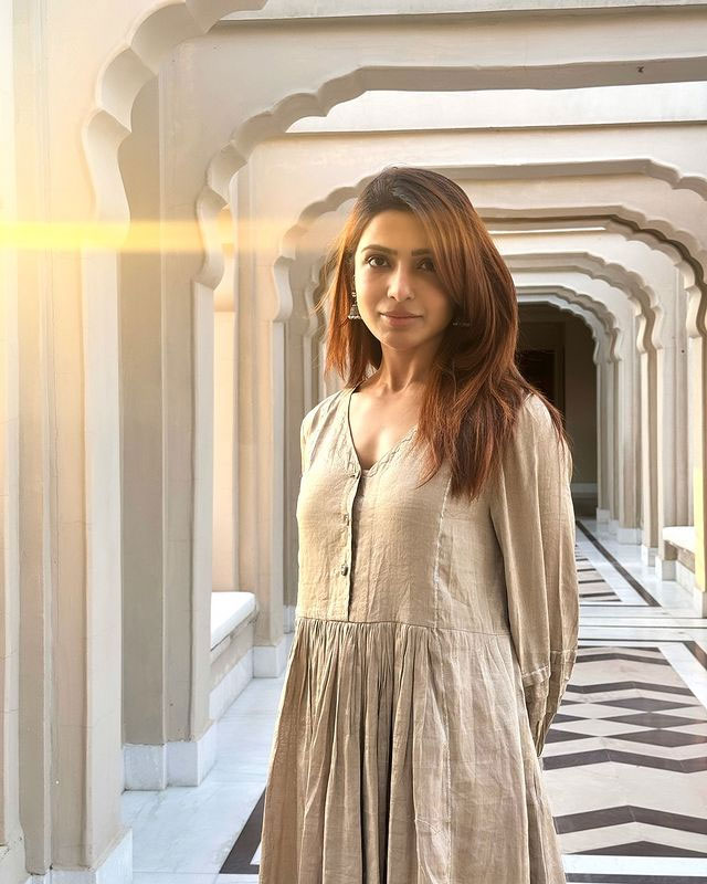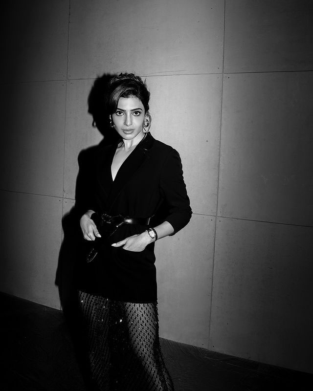 This moment was facilitated by Vogue India and Rochelle Pinto, underscoring Samantha’s commitment to platforms that champion honest storytelling and amplify meaningful voices. Minimal yet striking jewelry from Zaavorr, hair by Dakshhnidhi, and makeup by Avni Rambhia perfectly complemented her ensemble, enhancing the simplicity and impact of her look.