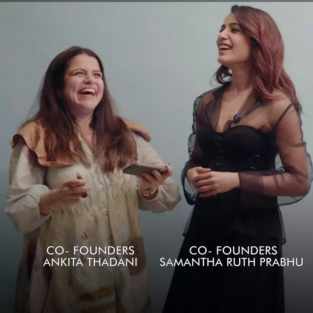 Another picture from the post shows Samantha standing with Maa Inti Bangaram team. There is also a black-and-white photo in the post where Samantha is seen sitting on a couch and laughing with another woman.