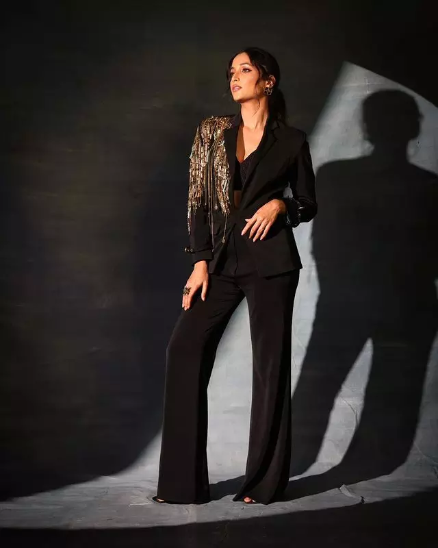 In these captivating images, she was seen wearing a royal blue embellished outfit that exuded regal charm.
