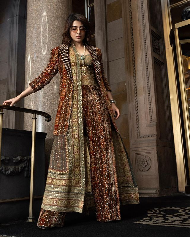In her Instagram post, Samantha captioned the pictures with the words, "Illuminating the festive season with the bold and beautiful." This not only highlighted her penchant for embracing the festive spirit but also emphasized her own bold and beautiful personality. The choice of attire was not just a fashion statement but a reflection of her grace and style.