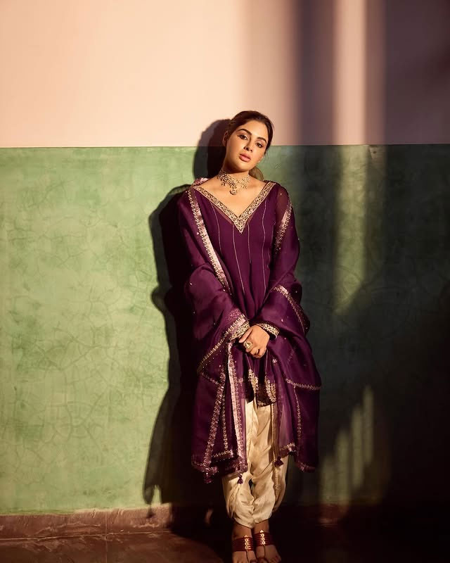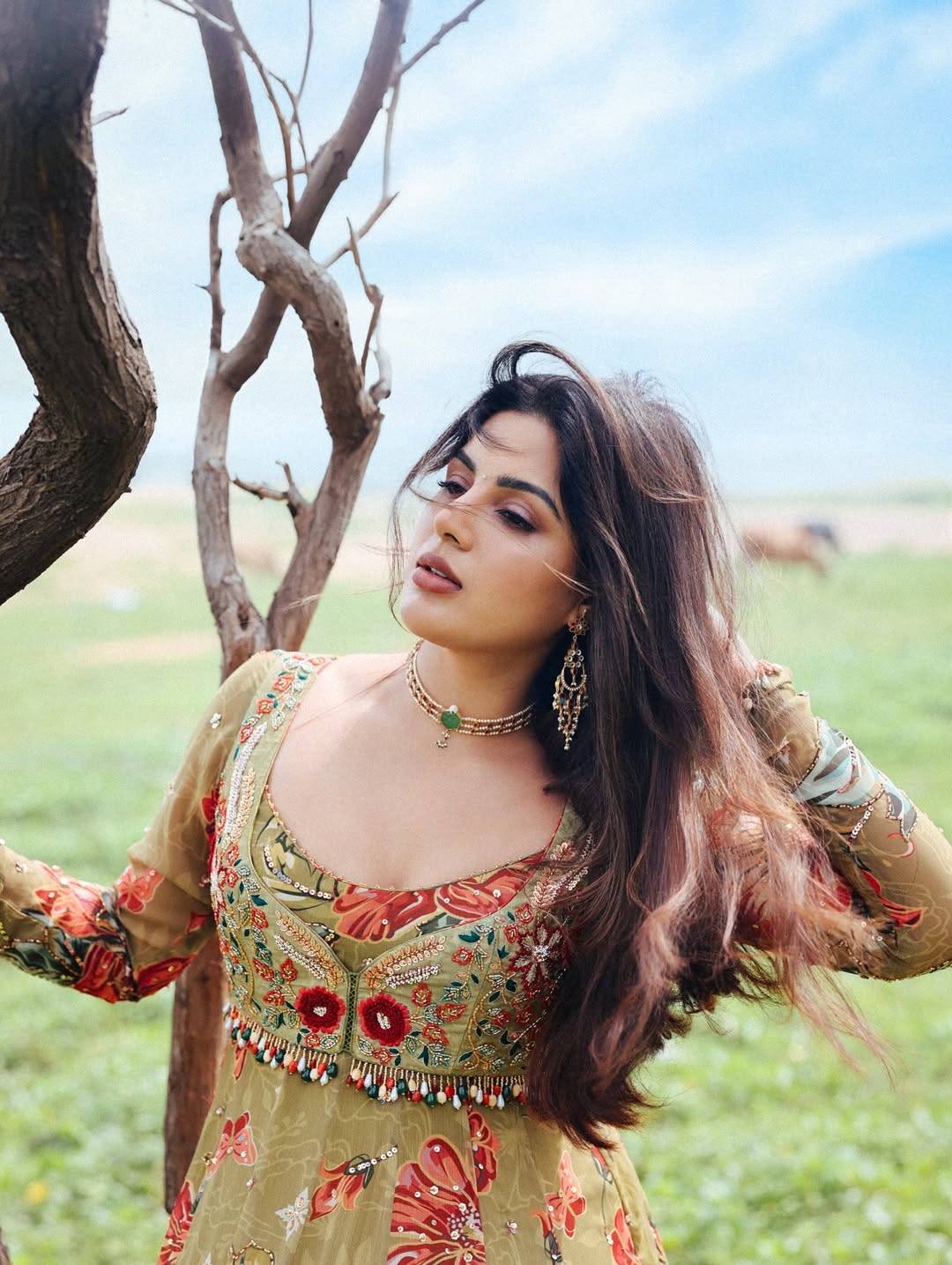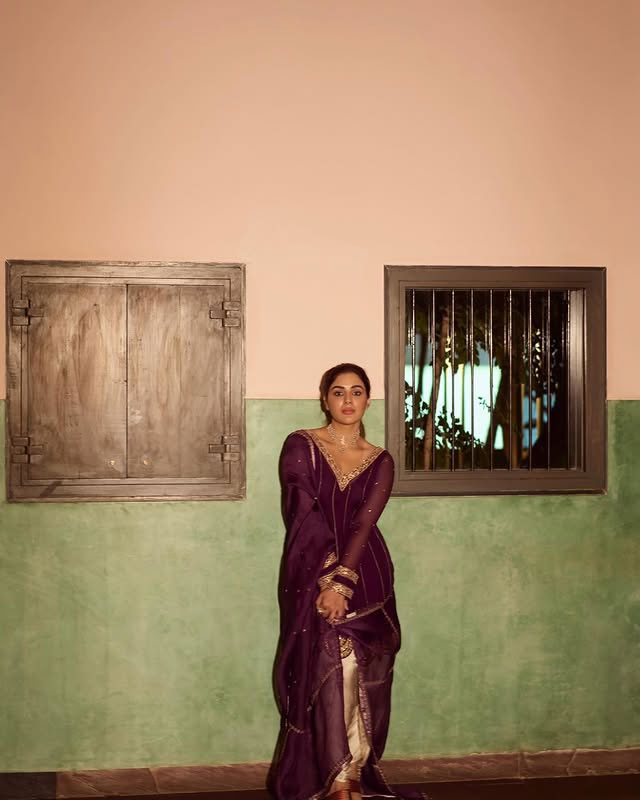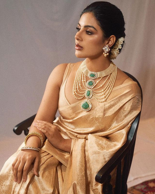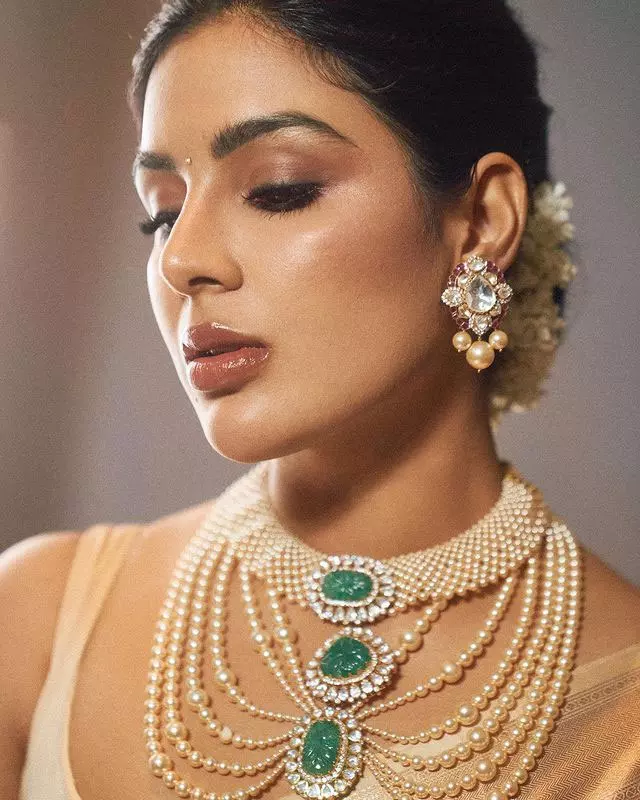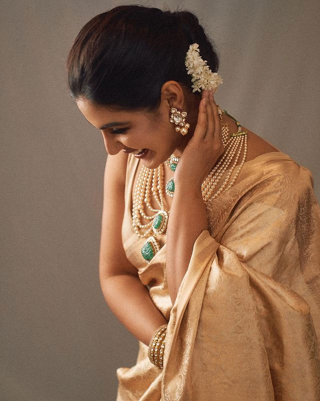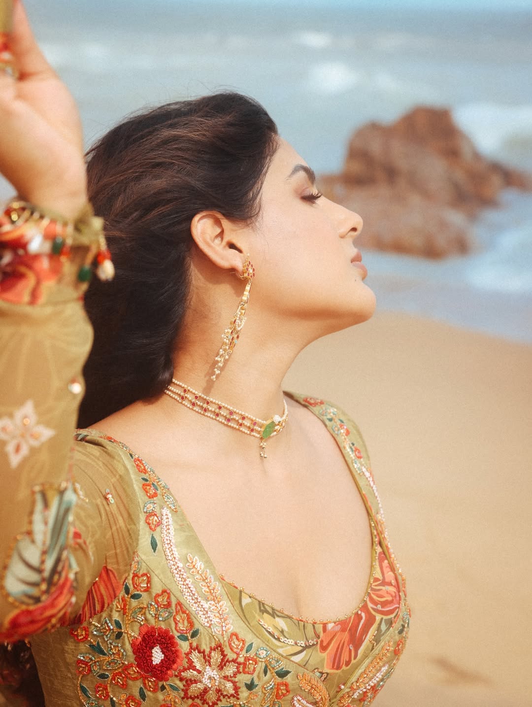In this stunning photoshoot, she exudes poise in a vibrant pink floral ensemble from @toraniofficial, paired with exquisite jewellery from @shriparamanijewels.