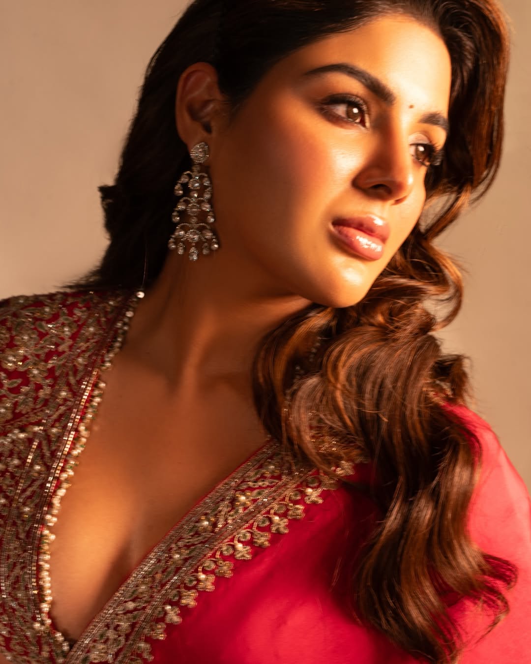 By: Tupaki Desk | 18 May 2025 8:46 PM ISTSamyuktha Menon, the talented actress known for her expressive eyes and elegant presence recently set Instagram on fire with her latest picture in a stunning red saree. Styled by @jukalker, she wore a gorgeous saree from @ridhimehraofficial, paired with dazzling jewellery by @akoyajewels. Her makeup, done by @sadhnasingh1,and hair styled by @kamaldeepss, perfectly complemented her look. The picture was captured beautifully by photographer @kannasrihari, while the styling team included @pratimajukalkar and @theblindersstudio. Actress. aptioned the post “Laal ❤️❤️ >>>>.”