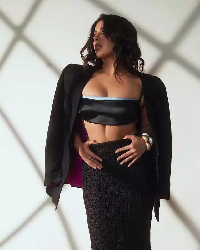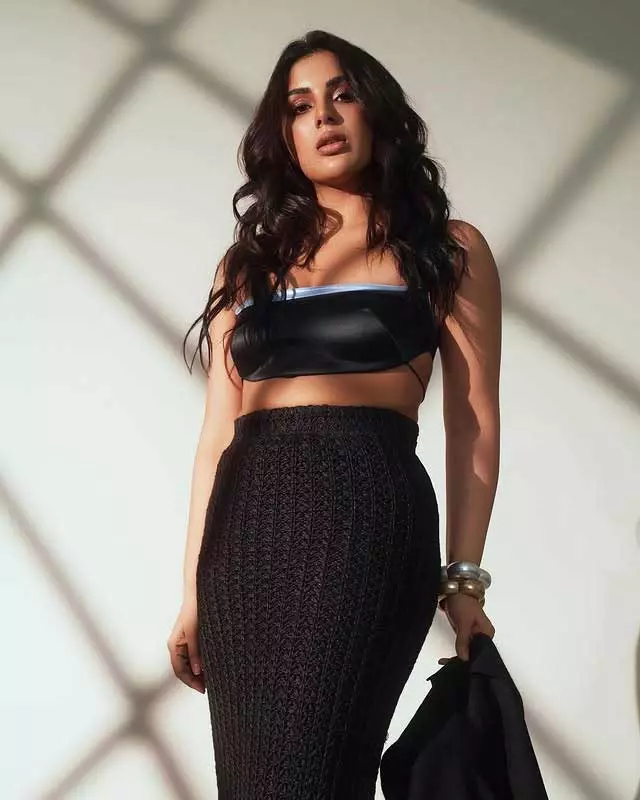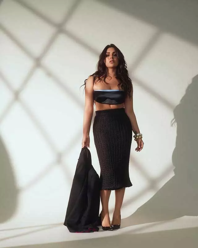 In the photo, Samyuktha is seen wearing a sleek black top and knitted skirt from @28moons.in, styled with accessories from @timelessjewelsby-_s. The look was styled by @shruthimanjari, with assistance from @niha-_-_varma. The photograph was beautifully captured by @ishan.nj.giri, while makeup was done by @sadhnasingh1 and hair by @koduruamarnath.