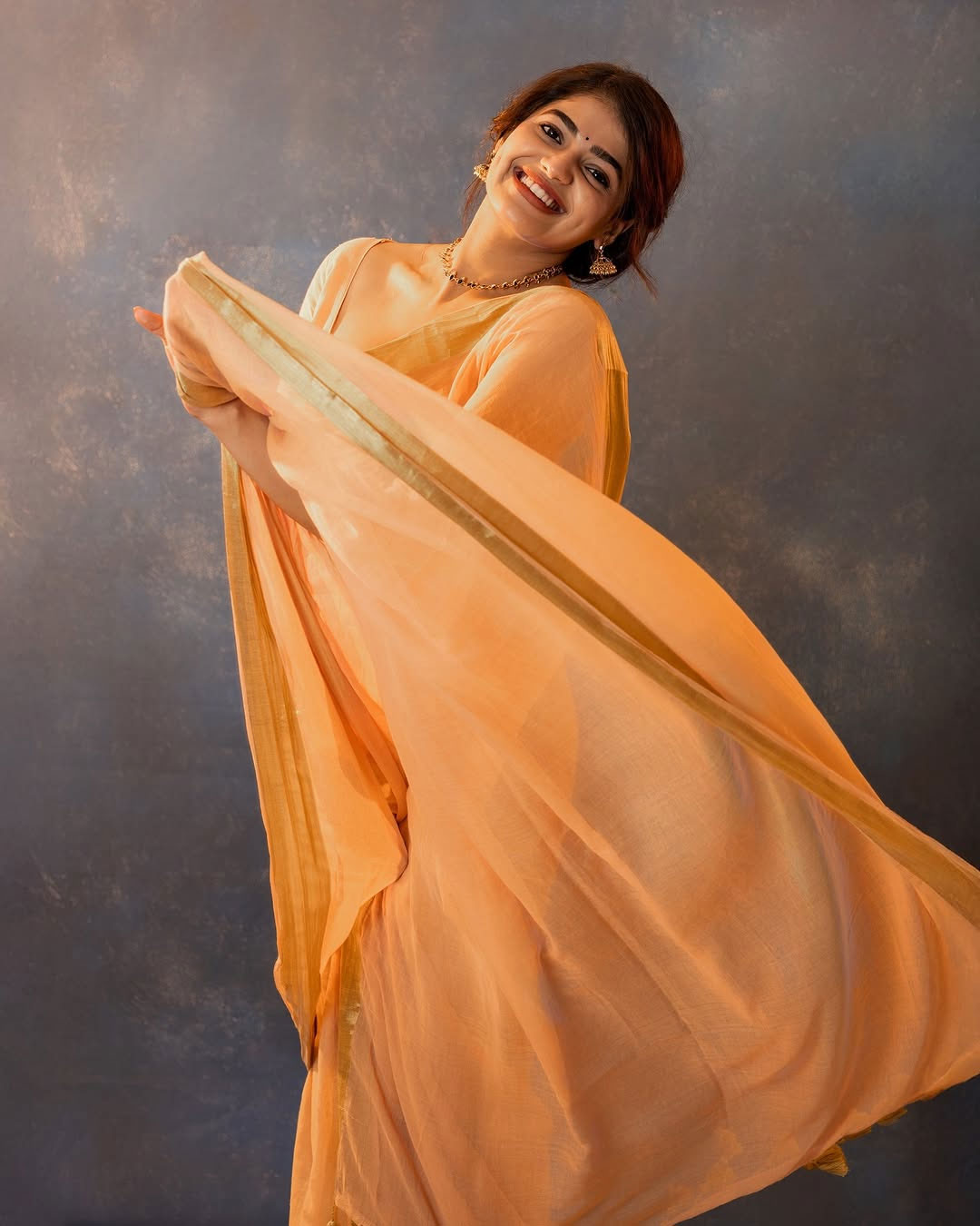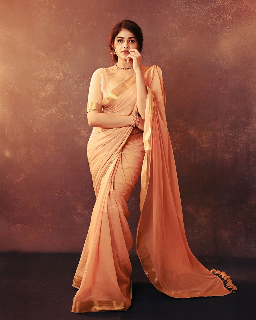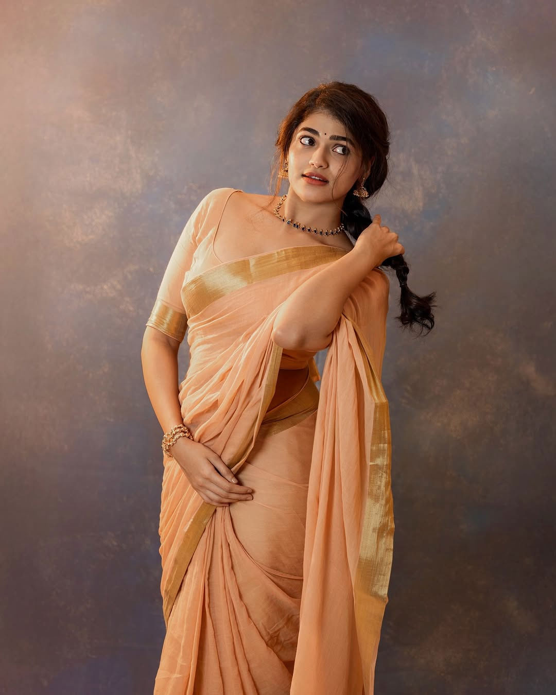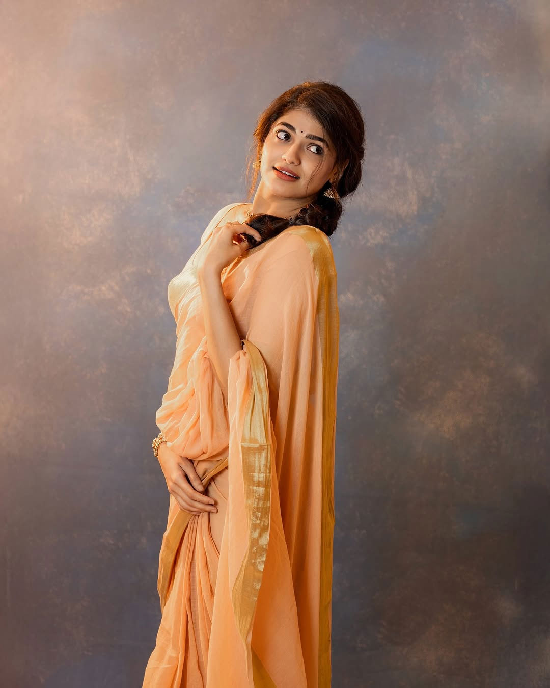 By: Priya Chowdhary Nuthalapti | 21 Aug 2025 9:48 AM ISTSangeerthana Vipin shared a new picture on Instagram. She looked happy and graceful in a light peach saree. She captioned the post with the words “Glowing ✨❤️”. Her bright smile made the picture warm and charming.