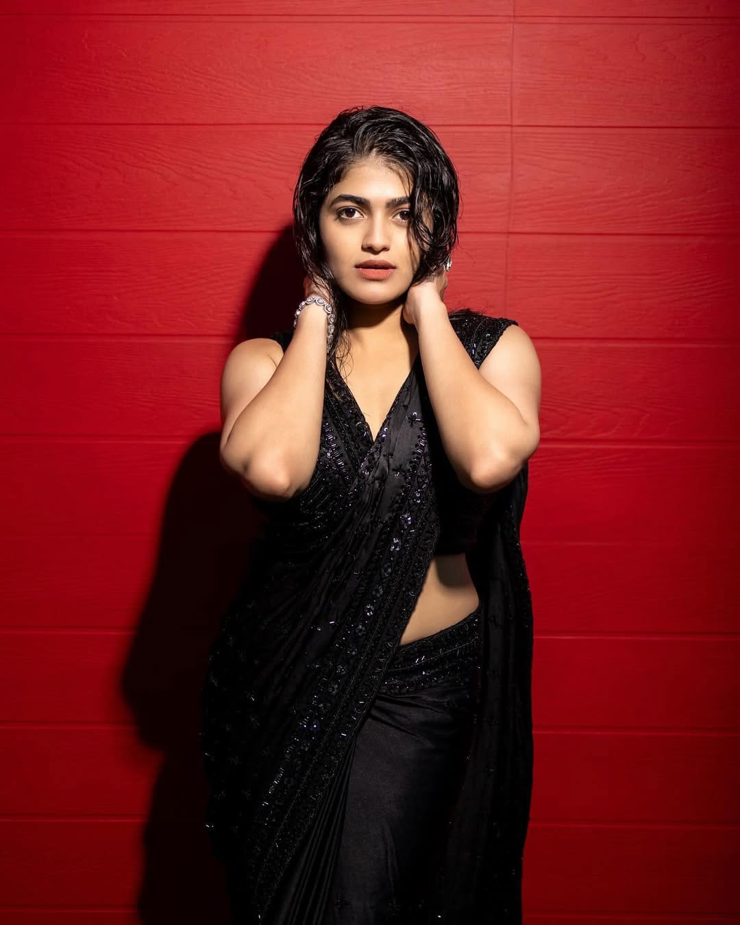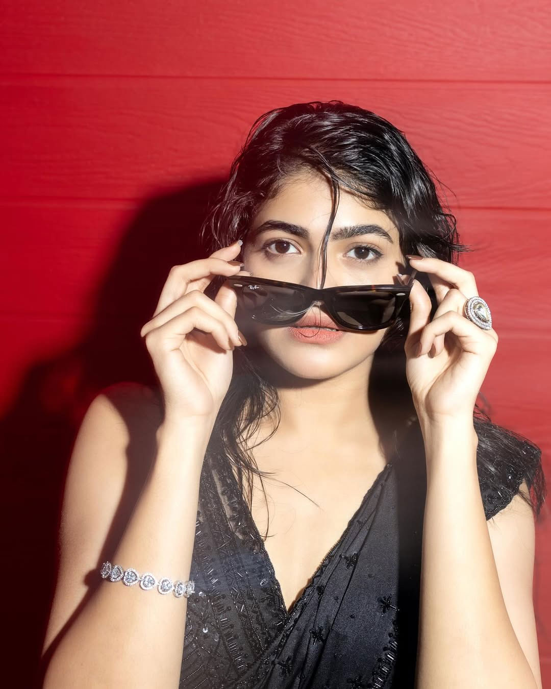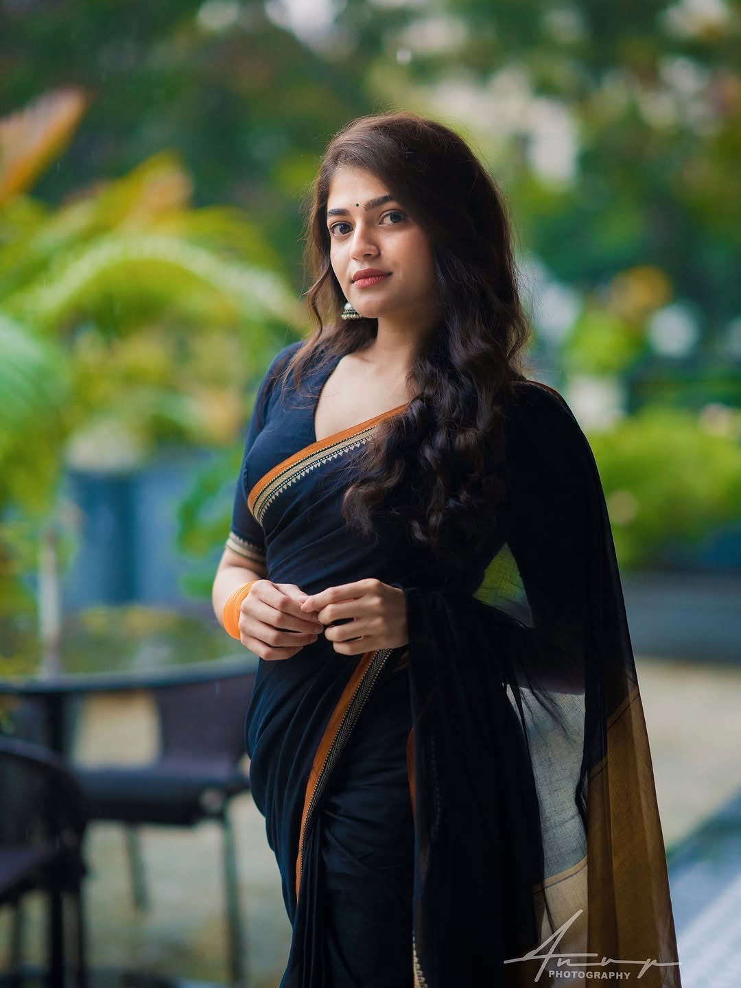 The photo was clicked by @saicharanthejareddyphotography. She was assisted by @sreeram-_ayyagari and @vasurentala. The saree was from @srishty.in. Her hairstyle was done by @officialpriyamakeup.