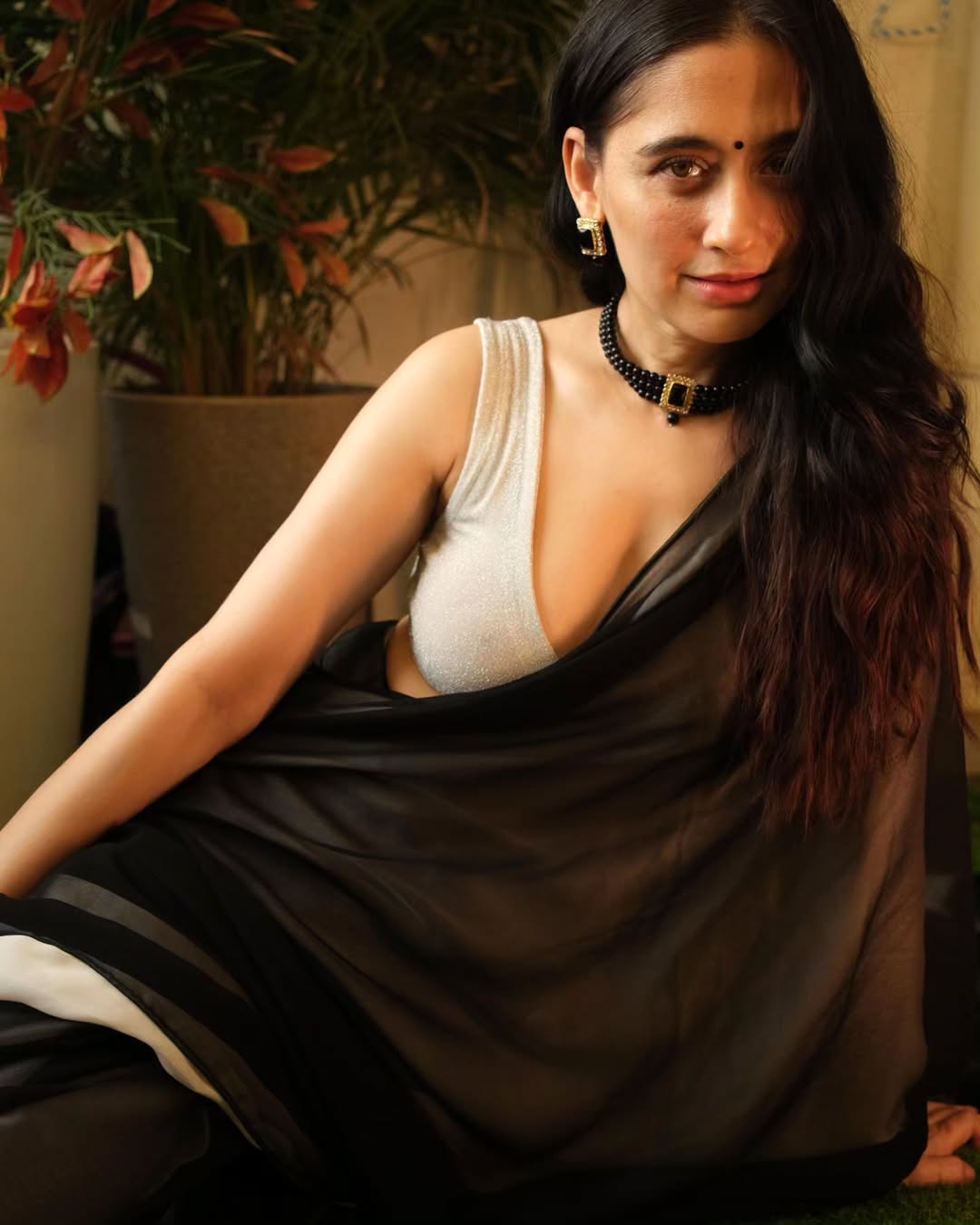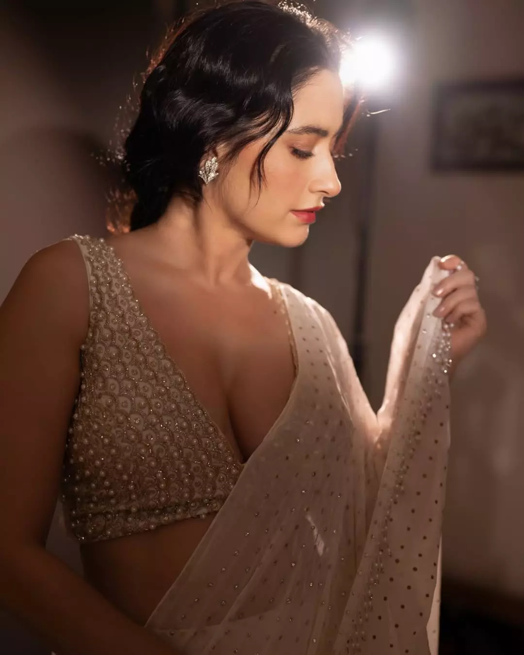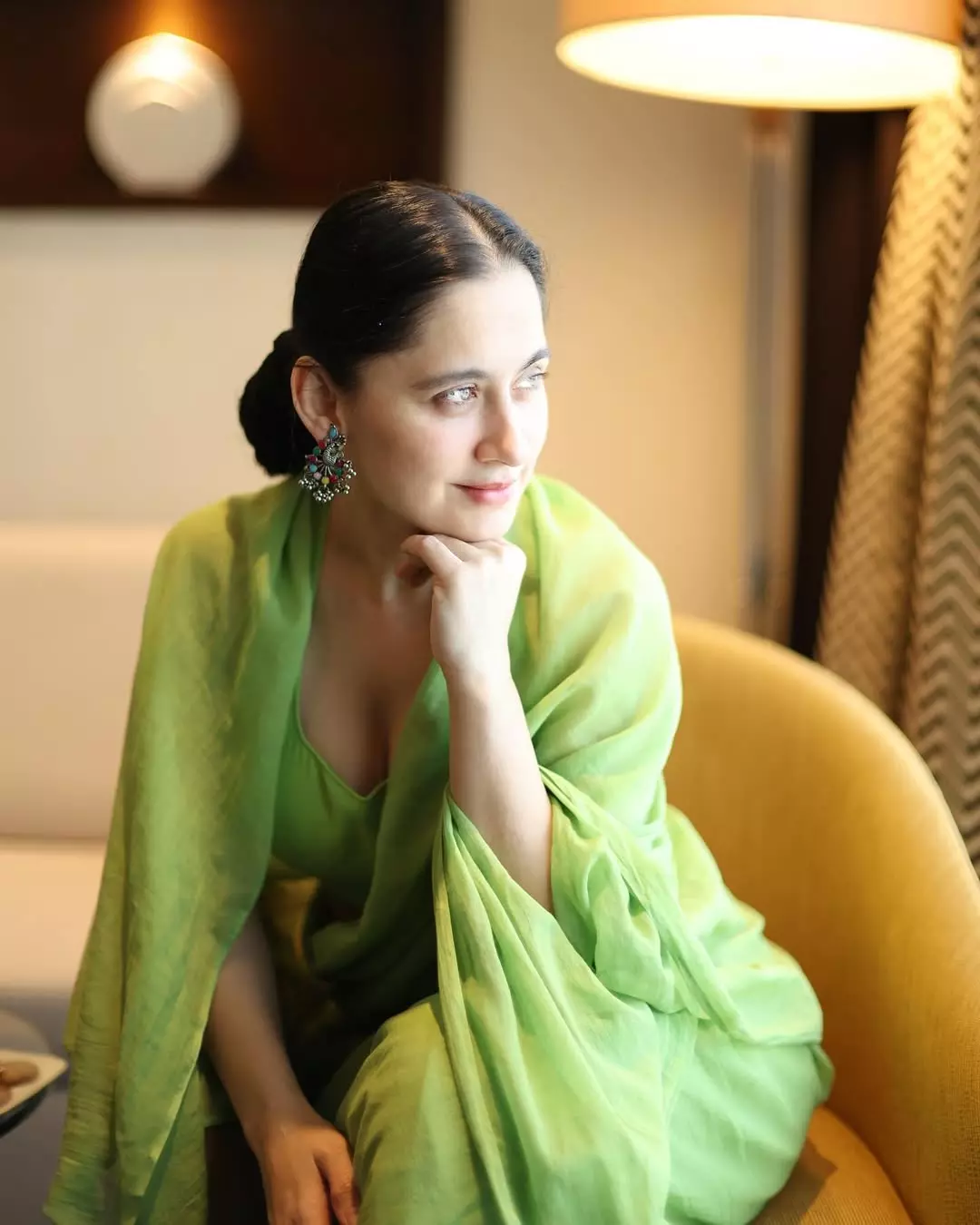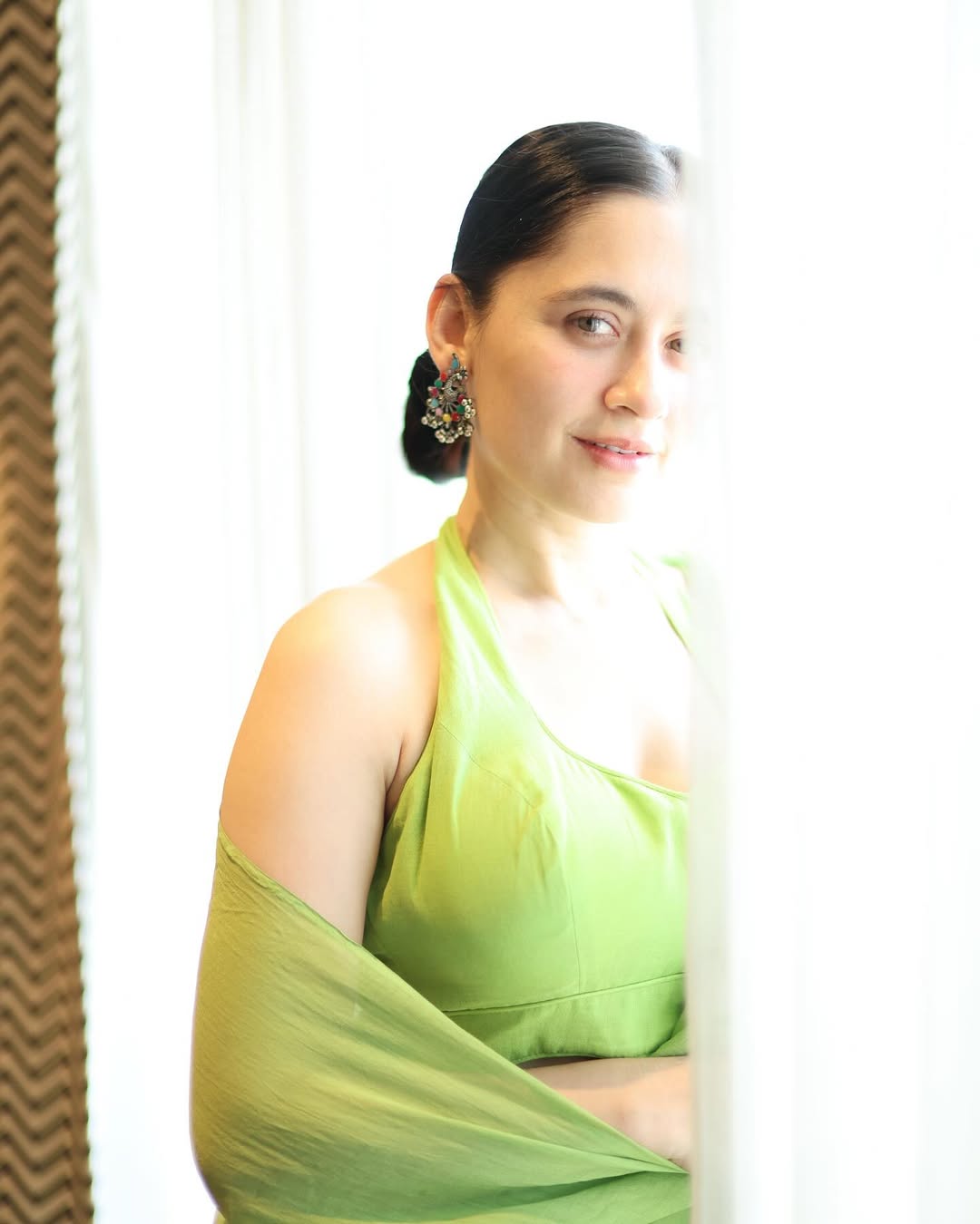Sanjeeda Shaikh glows with serene elegance in this enchanting photograph, draped in a refreshing light green saree that drapes beautifully over her figure.
