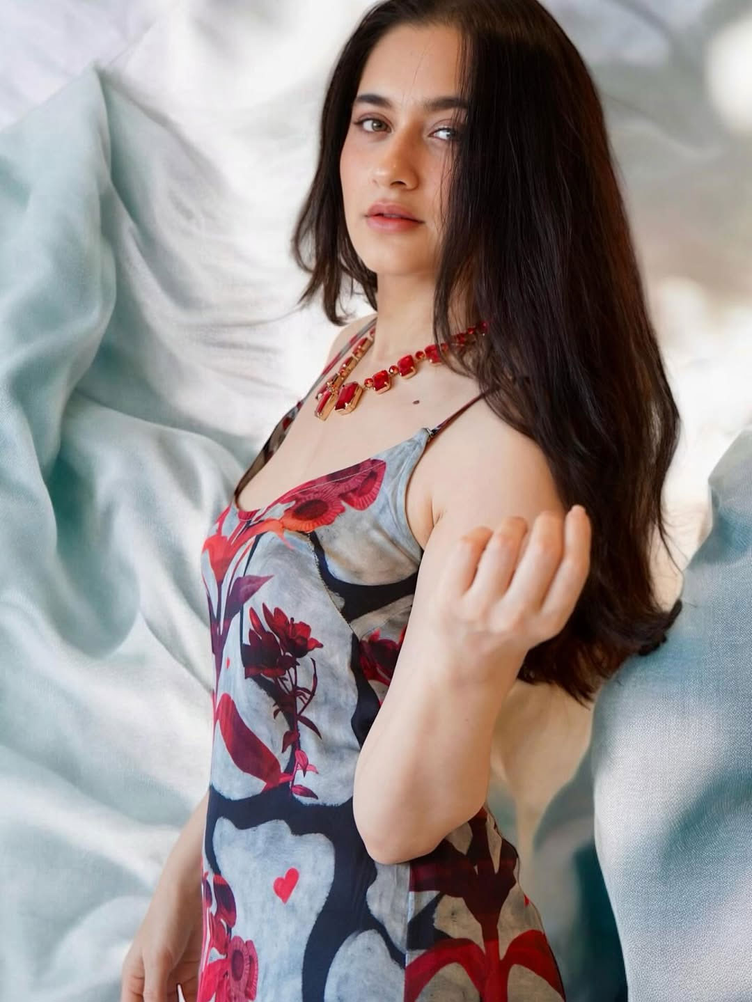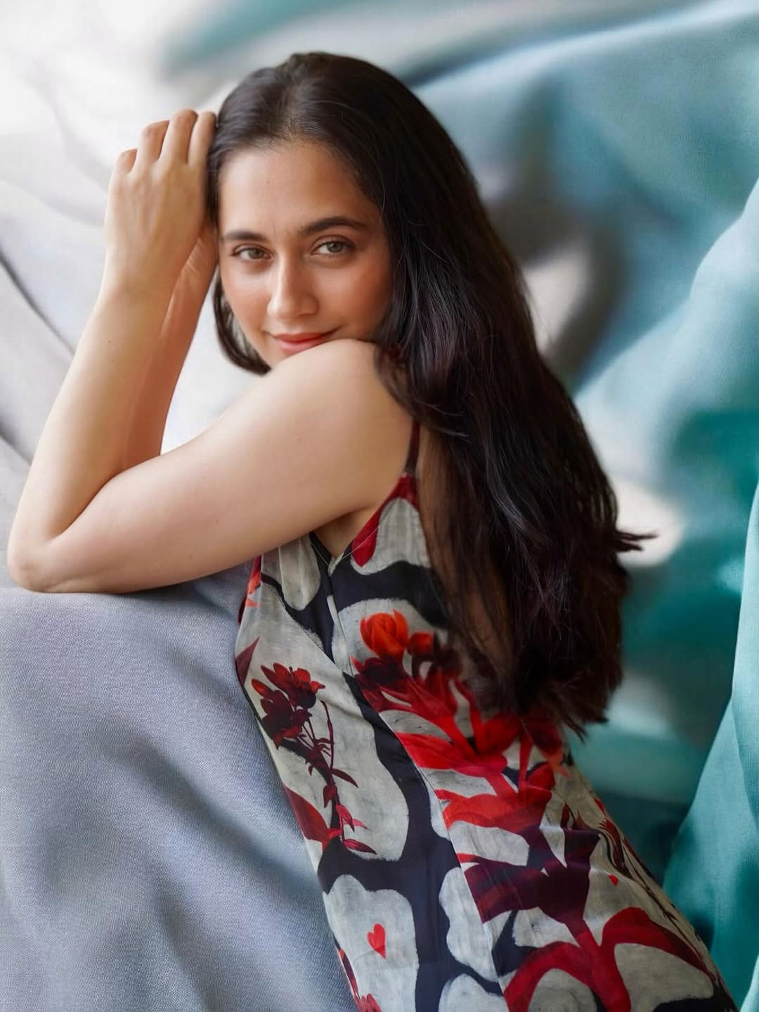 Sanjeeda Shaikh's latest picture on Instagram is everything fans love about her as it is graceful, elegant and stylish as ever. She is seen wearing a floral dress with red and black patterns. The dress is from @ekastories.store and styled by @roshni0819.