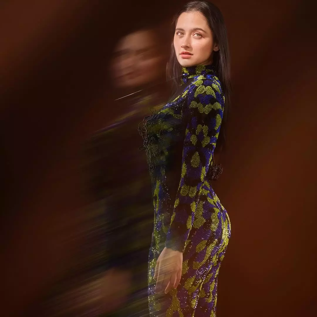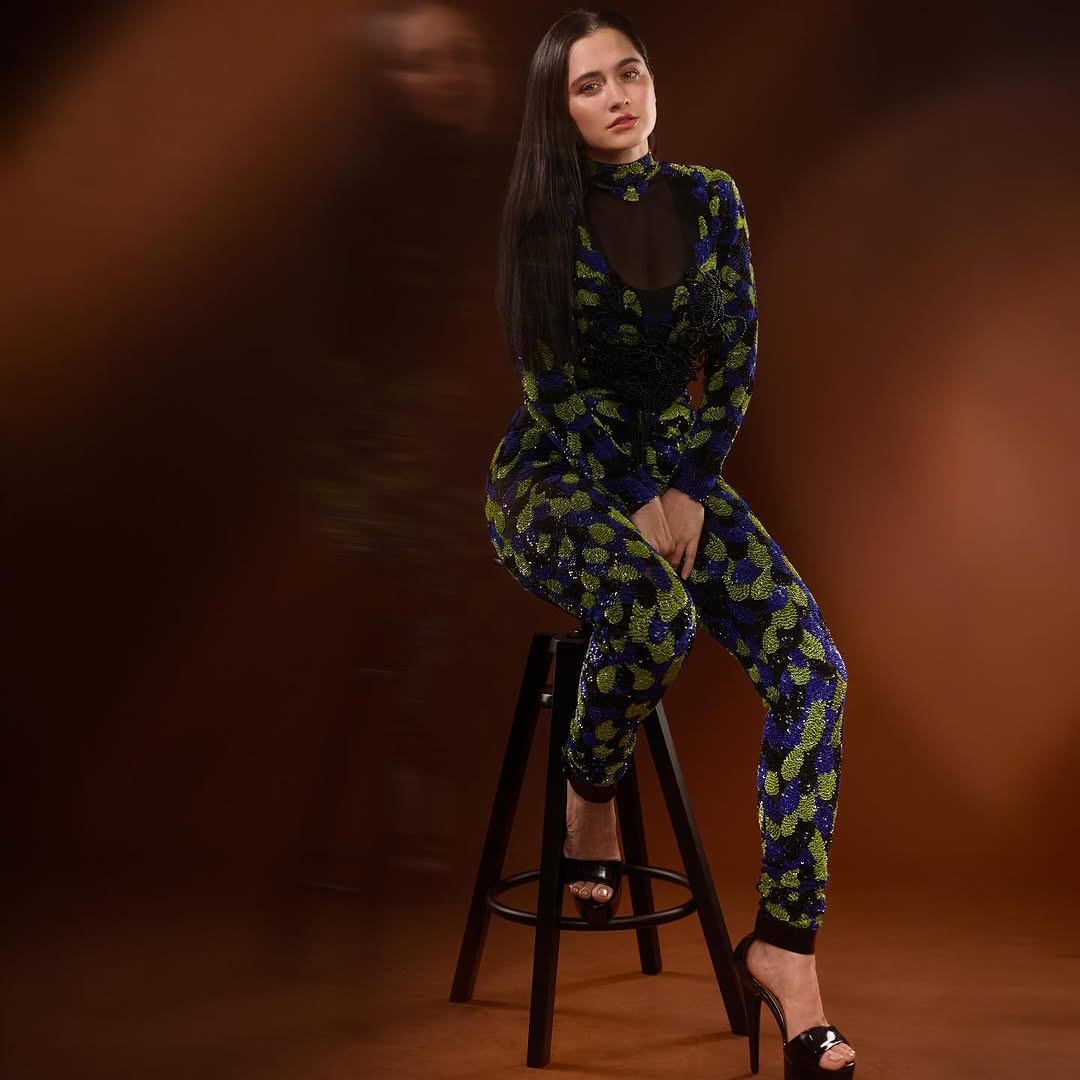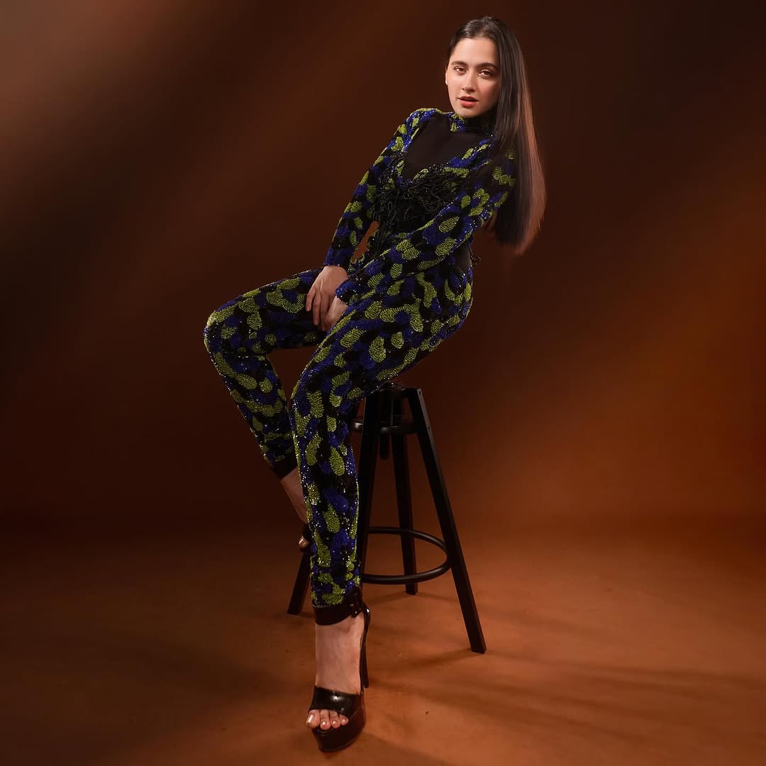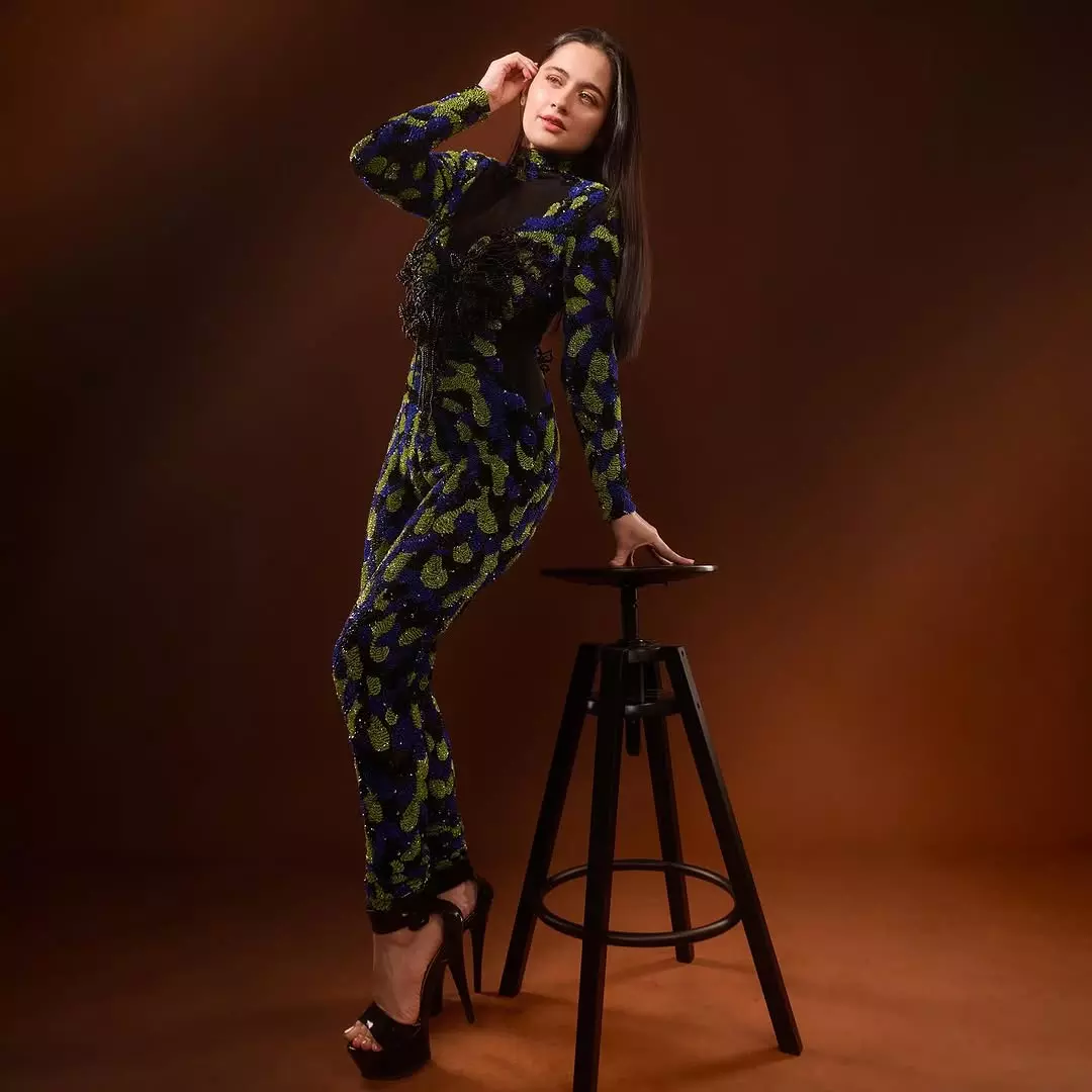 By: Priya Chowdhary Nuthalapti | 7 Dec 2025 2:40 PM ISTActress Sanjeeda Sheikh has once again impressed fans with her latest studio photograph shared on Instagram. In one of the pictures, she is seen sitting quietly on a tall wooden stool against a soft brown background. Her look is simple but very powerful. She is wearing a dark blue and green printed full-sleeve dress with a net neckline. The dress fits her perfectly and gives her a modern yet classy appearance. She has matched the dress with black high-heeled footwear.