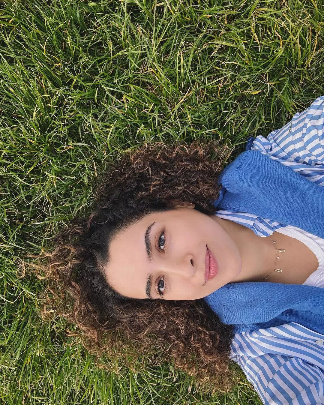 The dress, sitting just above the bust, accentuates Sanya’s shoulders and décolletage, creating a chic and timeless silhouette.