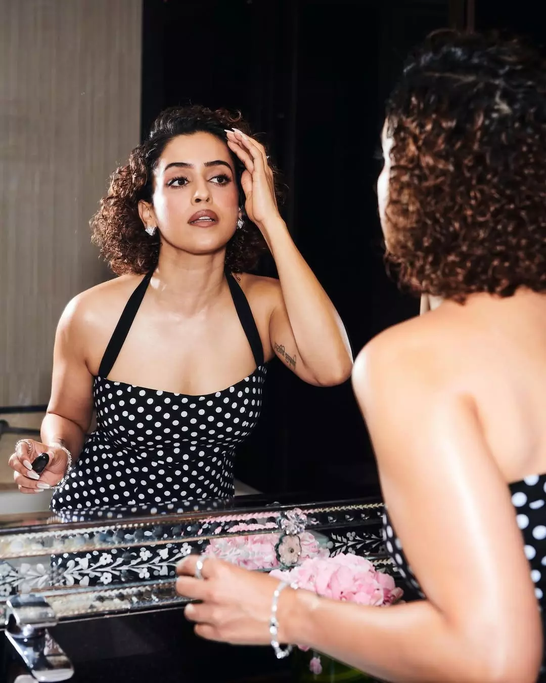 Like a calm ocean turning into a festival of colors, Sanya Malhotra made a striking impression with her new look.