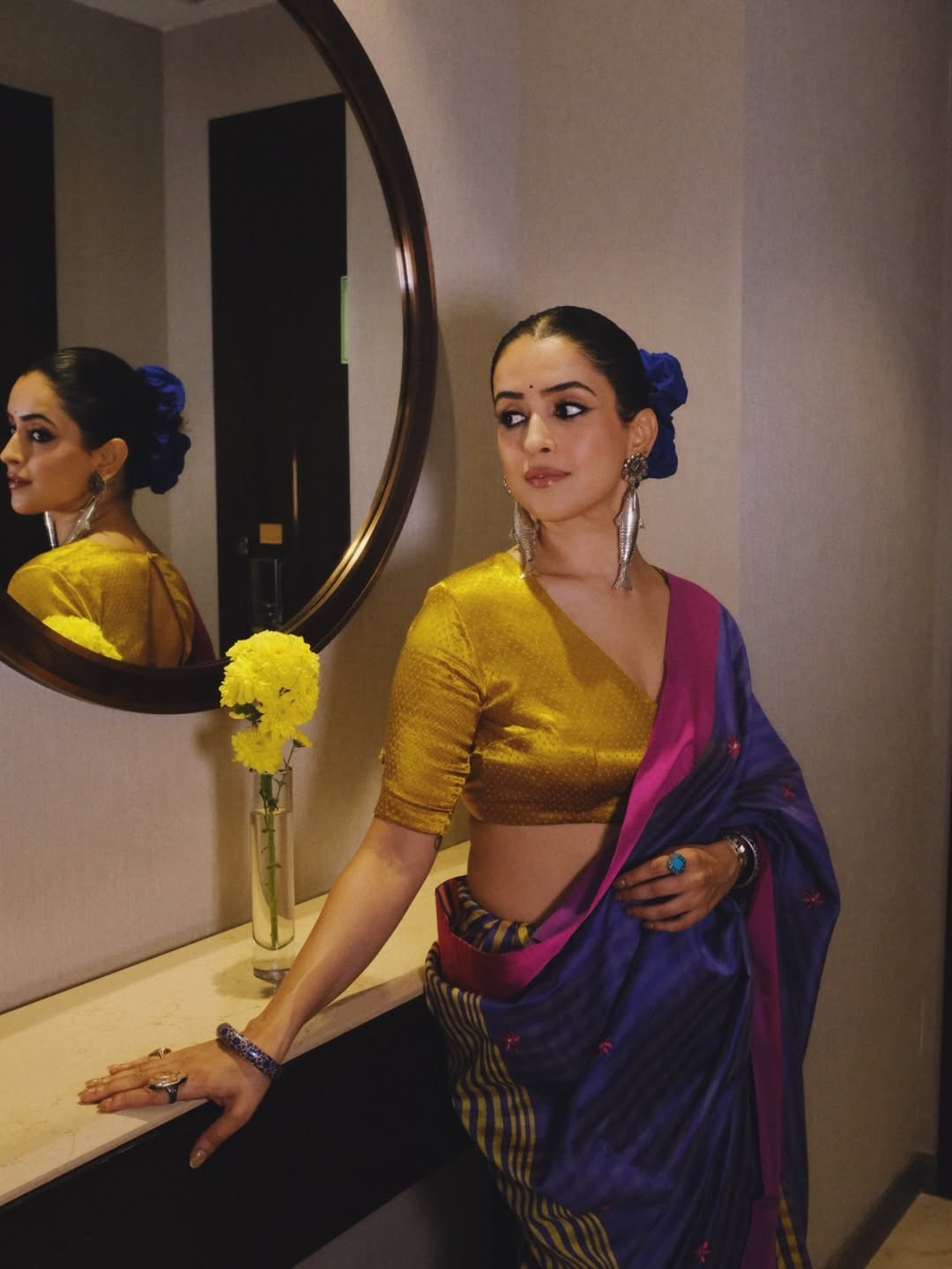 1 / 36Sanya Malhotra Stuns in a Vibrant Traditional Saree Look