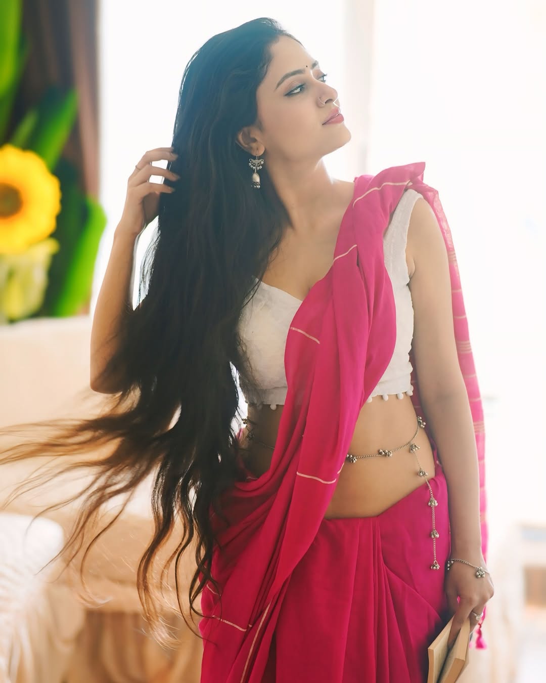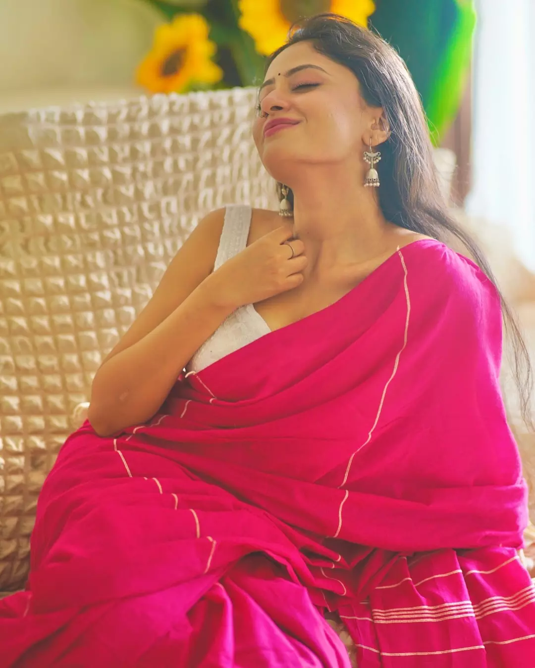 By: Tupaki Desk | 26 July 2025 12:11 PM ISTSanya posted a new photo on Instagram. She wore a pink saree with a white blouse with long earrings and silver bangles that matched her simple style. She smiled as she looked down with her hair left open.